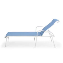 Madeira Outdoor Sling Chaise Lounge In Textured White With Dupione Poolside Sling