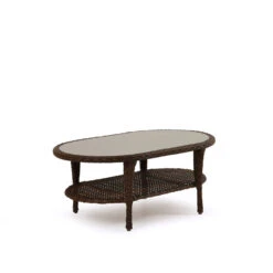 Garden Terrace Outdoor Rectangle Wicker Cocktail Table With Stone Top