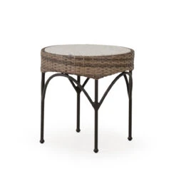 Garden Terrace Outdoor 21″ Round Wicker End Table With Stone Top