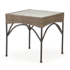 Garden Terrace Outdoor Square Wicker End Table With Stone Top