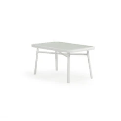 Madeira Outdoor Cocktail Table In Textured White With Aluminum Slat Top