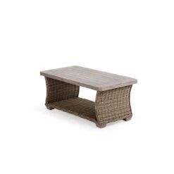 Madeira Outdoor Cocktail Table In Textured White With Poly Top In Linen