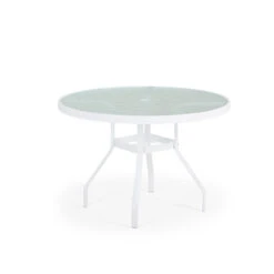 Who says strength can’t be elegant? Enjoy the beauty of this 42″ Round Glass Top Dining Table with its durable extruded aluminum foundation. You know it’s built for Florida with special attention paid to the sand-blasted frames for superior finish adhesion. Imagine all this paired with your inviting outdoor space! Many matching pieces to fit your style. Buy today and create a true one of a kind resort destination in your backyard!