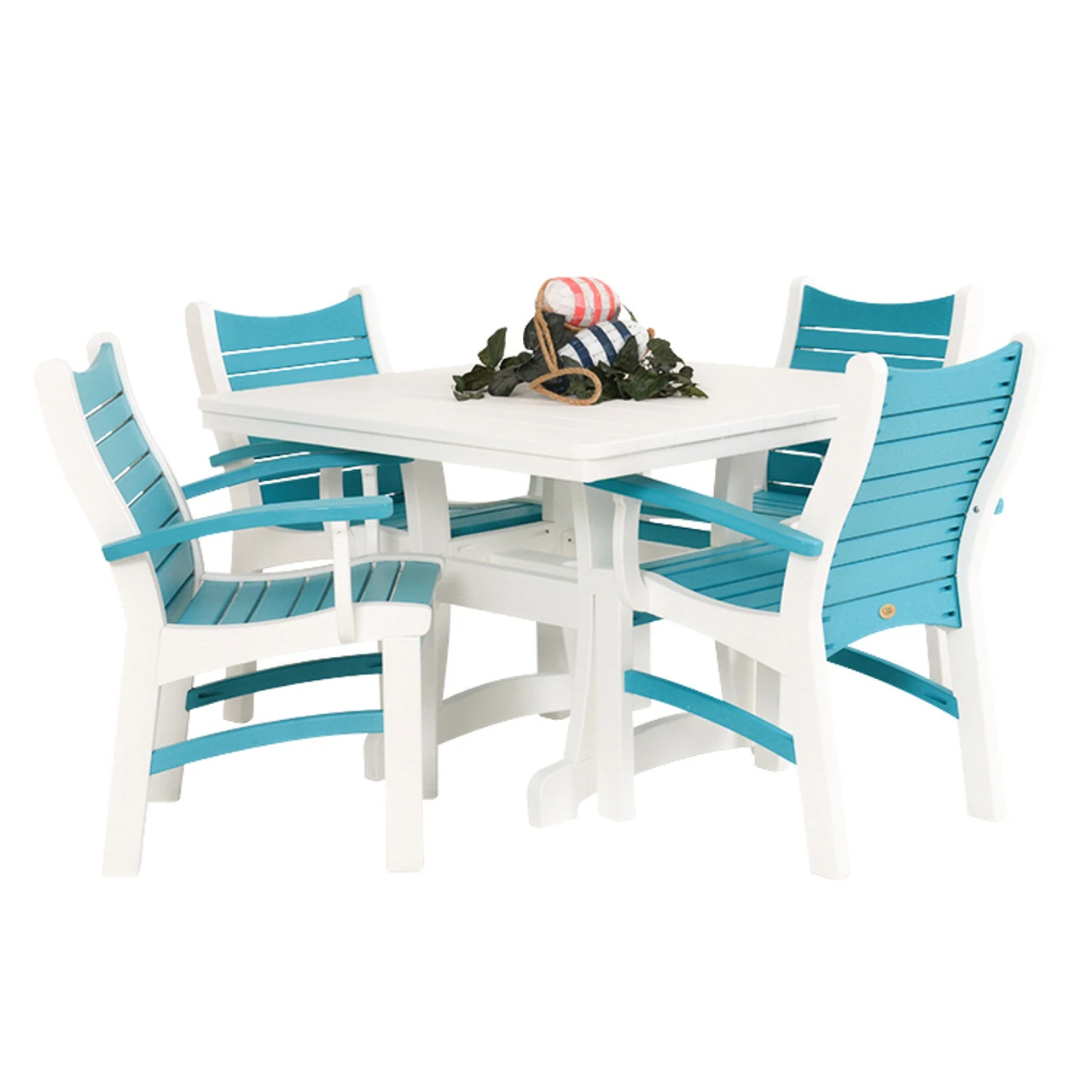 This modern design is contoured for comfort and built for durability, the Bayshore dining set is the perfect addition to your space – available in dining, counter and bar height. Customize it to your unique style with the many color options. Bayshore is crafted from post-consumer recycled plastic and super corrosion-resistant chromium-plated stainless steel hardware. With that combination, you have beautiful furniture made to last and easy to care for. American durability and American quality from start to finish. 100% Designed and Manufactured in the USA.