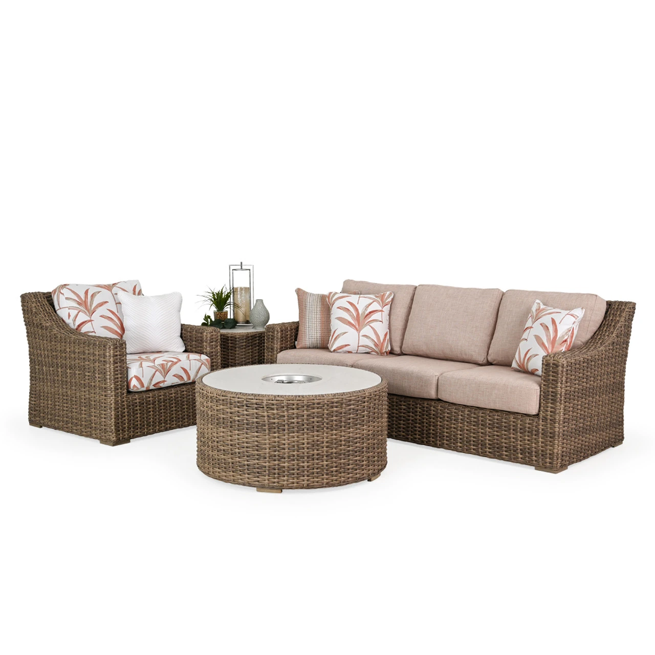 Make every day feel like a vacation and relax with the Bermuda Outdoor Wicker Round Fire Pit with Tile Top. The all-weather wicker is hand woven over aluminum frames that will not rust. This fire pit features a tile top with lid that match the other pieces in collection. A wonderful addition to your patio or garden, guaranteed to last in Florida for years to come.