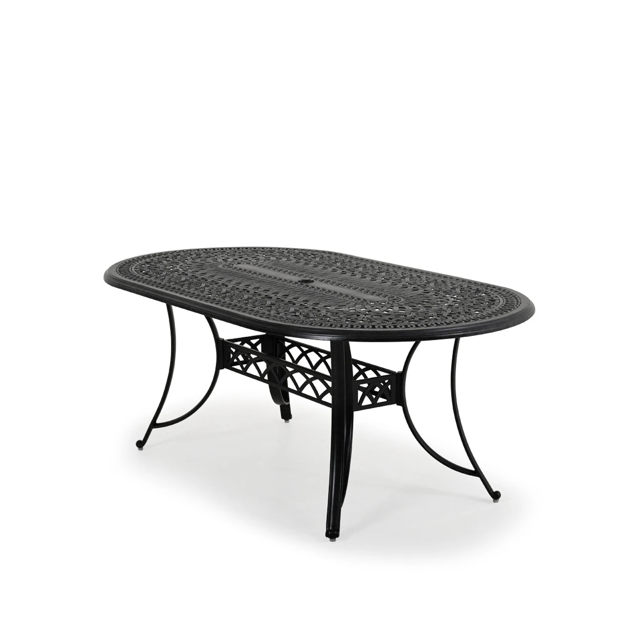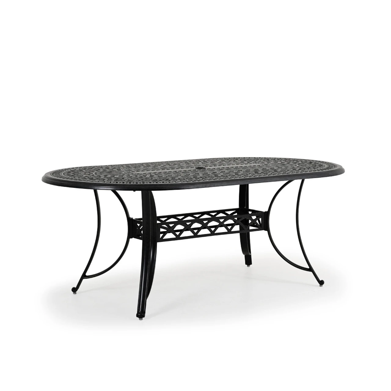 The Charleston Outdoor Cast Aluminum 42″ x 76″ Oval Dining Table is the perfect way to relav and enjoy your patio living area! Garden Elegance at its best! Beautiful and durable with its ornate frame design & contoured backs is sure to please. Just add our super comfy Charleston Dining Chairs and relax.