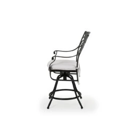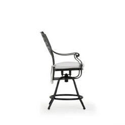 Our Charleston Swivel Counter Height Stool is sure to please with its ornate frame design & contoured backs. Beautiful & Durable – constructed from Rust Proof heavy weight cast aluminum with a powder coat finish, so this collection is made to last. Just add our super comfy cushions and relax!