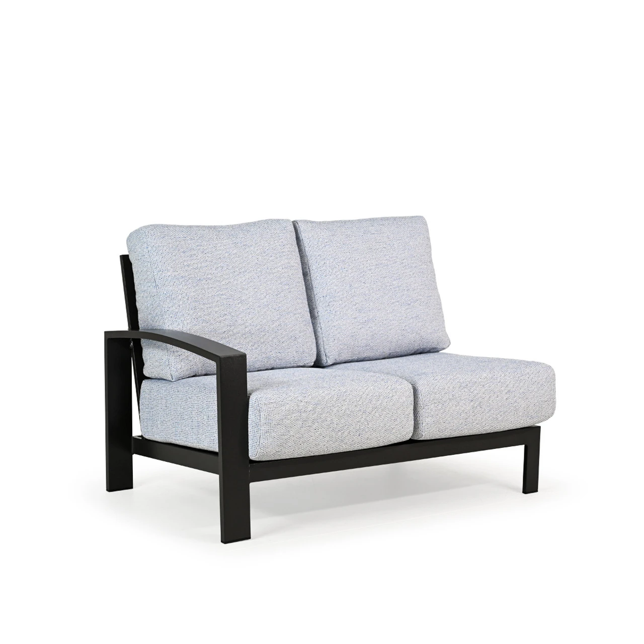 The Costa Outdoor Aluminum Left Facing (LF) Arm Sectional Loveseat is a bold and beautiful addition to any outdoor setting. The well-placed transitions on this piece are both functional and aesthetically pleasing, allowing for maximum comfort while still maintaining a visual appeal. The lines of the loveseat flow gently into one another, making it a perfect conversation piece for any gathering.