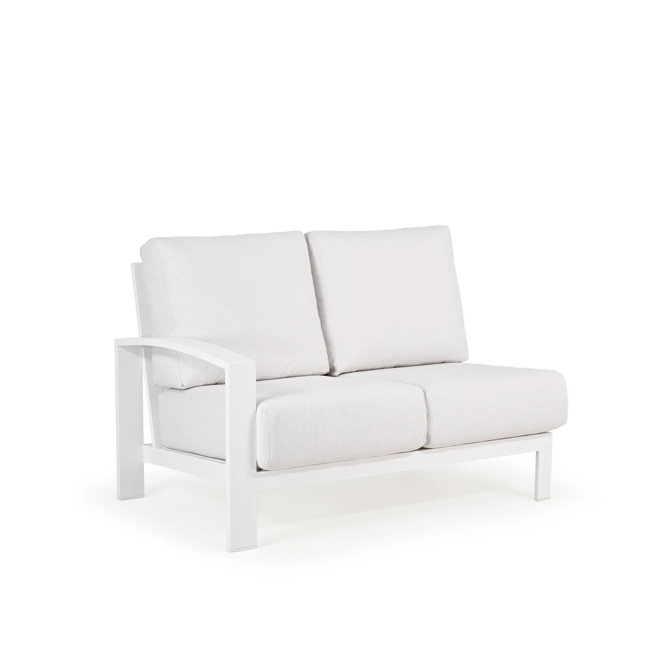 The Costa Outdoor Aluminum Left Facing (LF) Arm Sectional Loveseat is a bold and beautiful addition to any outdoor setting. The well-placed transitions on this piece are both functional and aesthetically pleasing, allowing for maximum comfort while still maintaining a visual appeal. The lines of the loveseat flow gently into one another, making it a perfect conversation piece for any gathering.