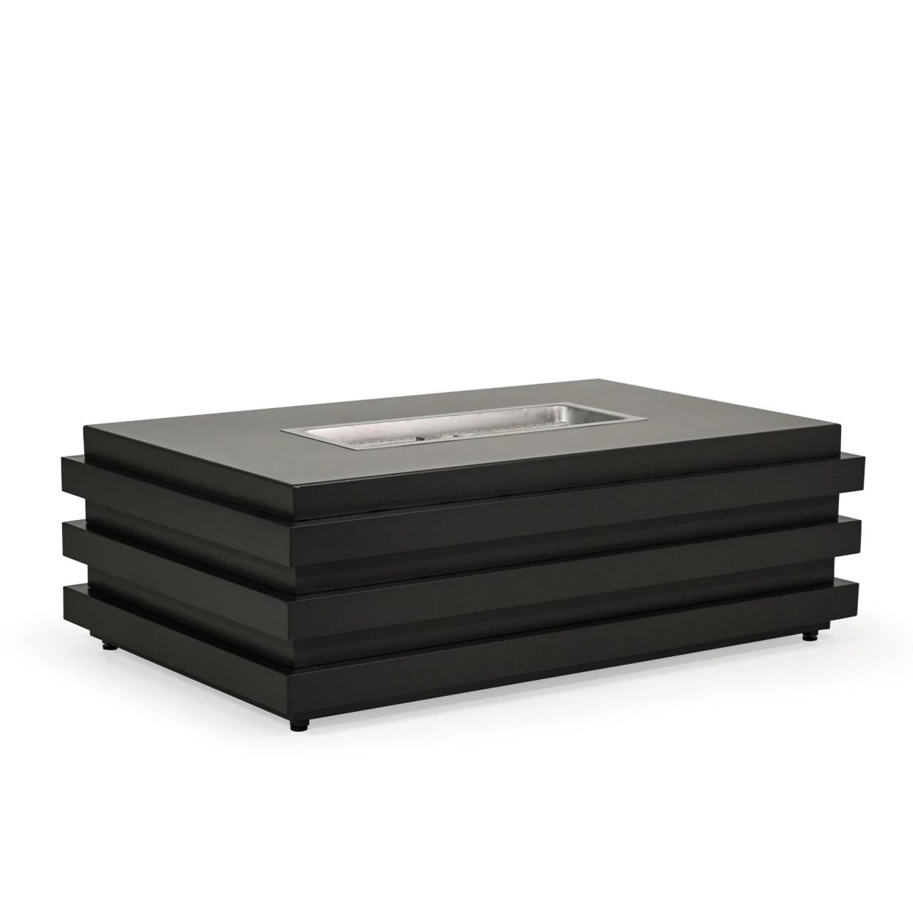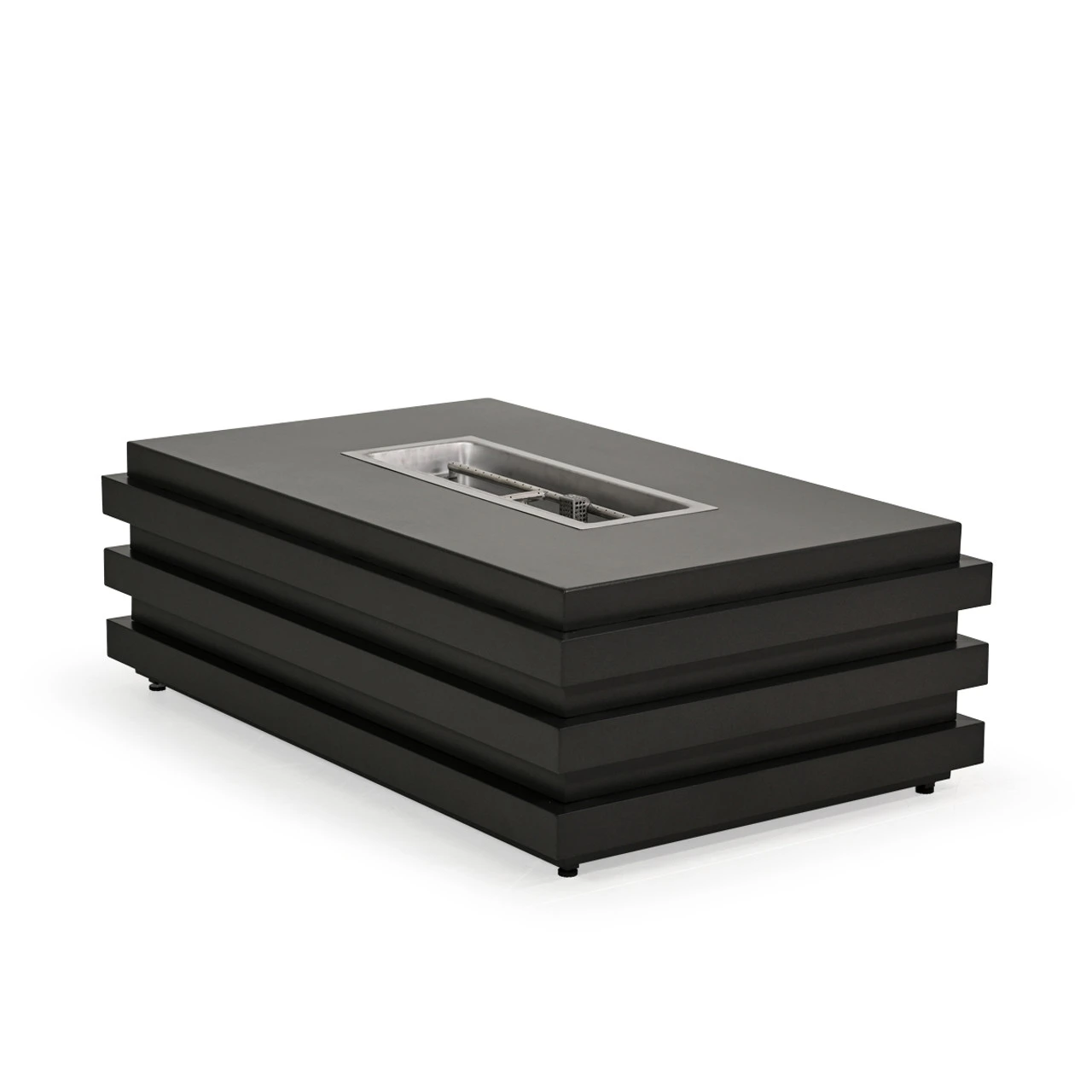 The Costa Fire Pit offers not only a stylish contemporary look but the functionality and ambiance of a lower chat height table. The fire pit is crafted of aluminum but has the look of concrete without the heavy weight. This fire pit is equipped with a lid, a slide out tray for propane tank storage and 67,000 BTU burner.
