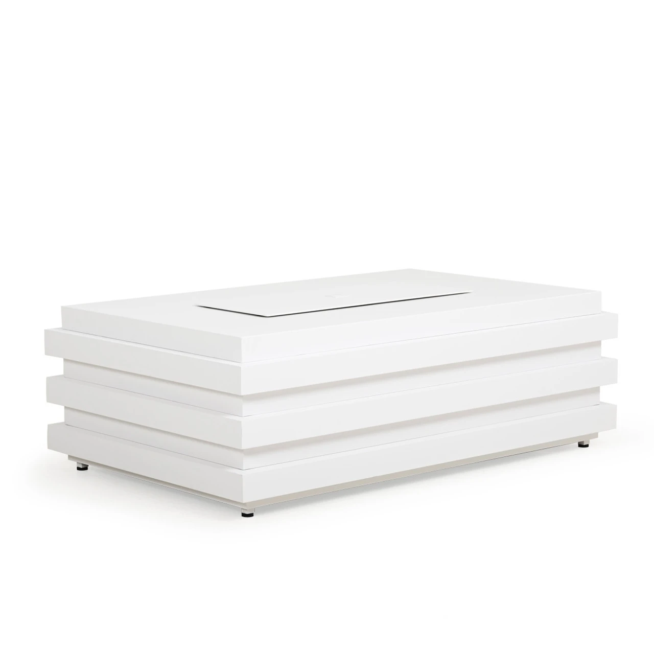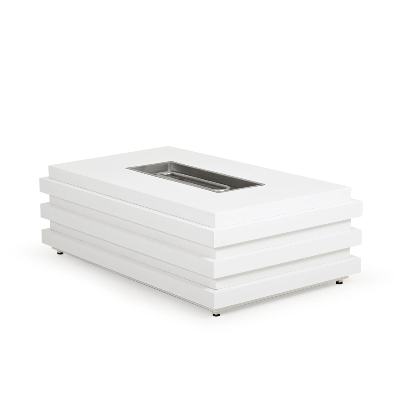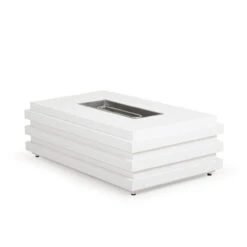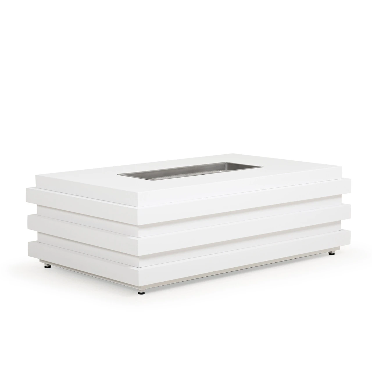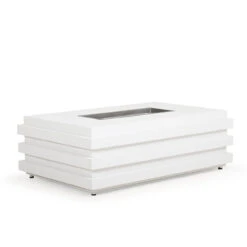 The Costa Fire Pit offers not only a stylish contemporary look but the functionality and ambiance of a lower chat height table. The fire pit is crafted of aluminum but has the look of concrete without the heavy weight. This fire pit is equipped with a lid, a slide out tray for propane tank storage and 67,000 BTU burner.