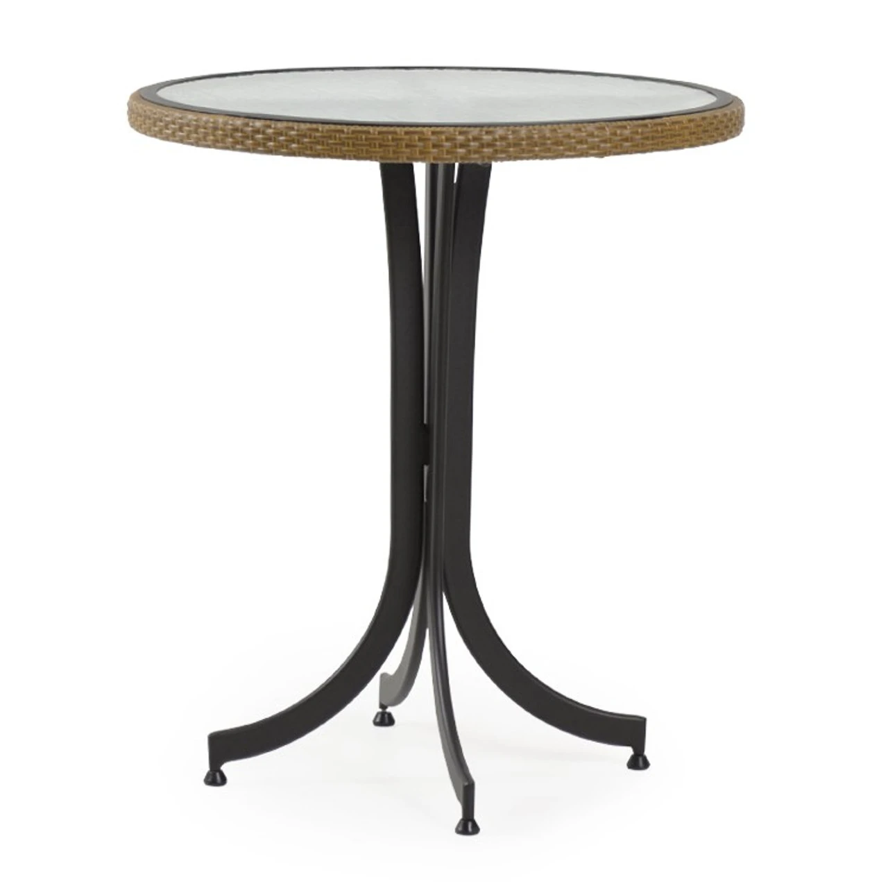 TheĀ Empire Outdoor Wicker 30″ Round Counter Height Table is made with an aluminum frame with a resin wicker weave trim and glass top.