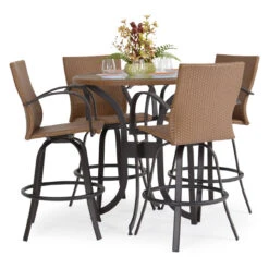 The Empire Outdoor Wicker Bar Height Stool has a contemporary style that’s designed for comfort. The bar stool is made with all aluminum frames that are dressed in a resin wicker weave with curved backs for lumbar support. Stools swivel on commercial grade mechanisms for added durability.