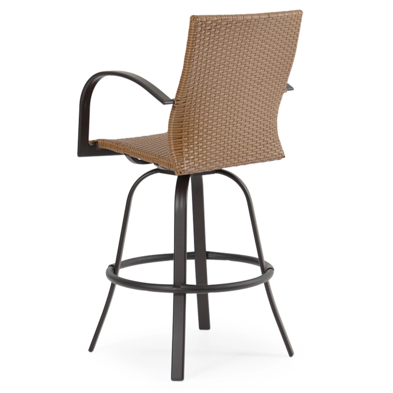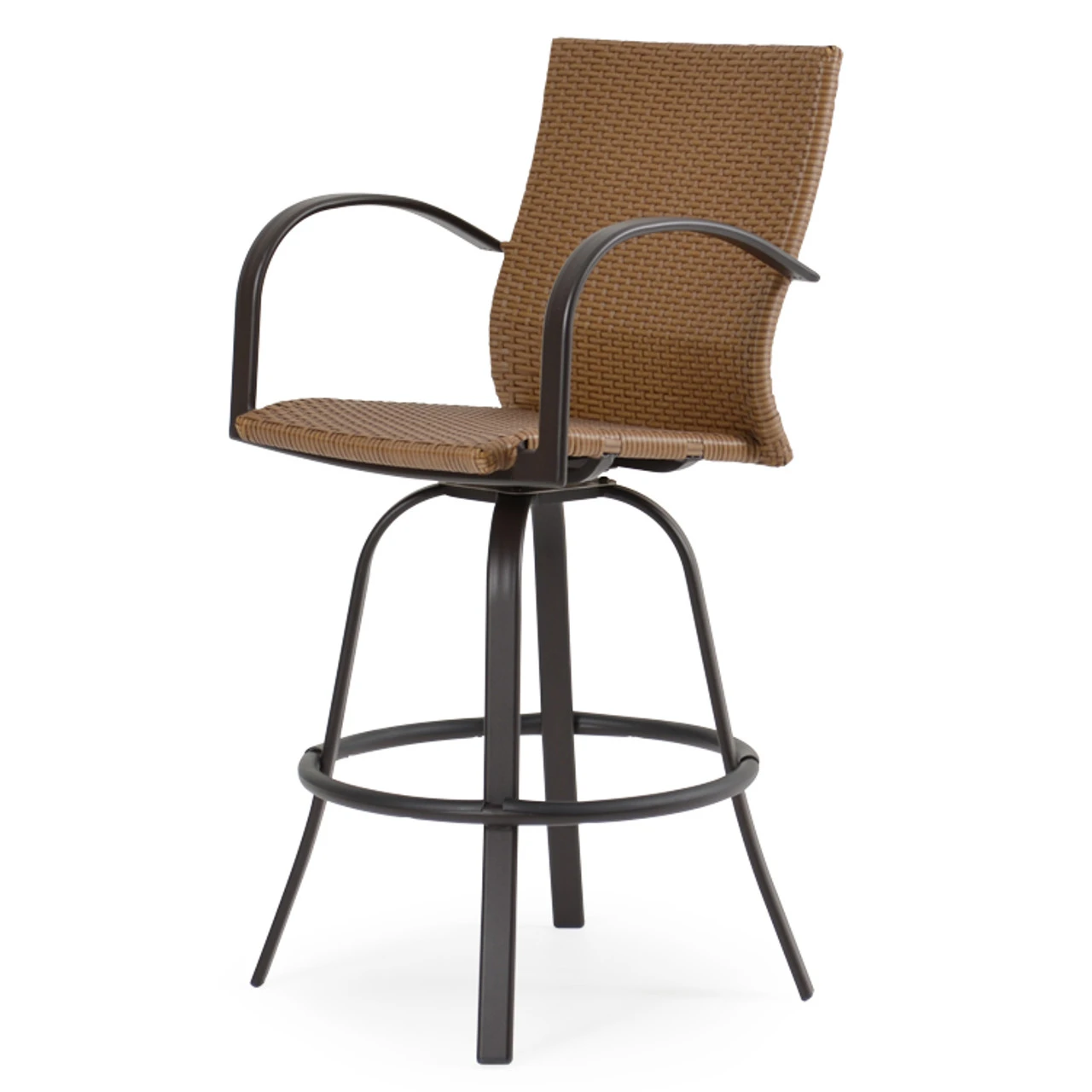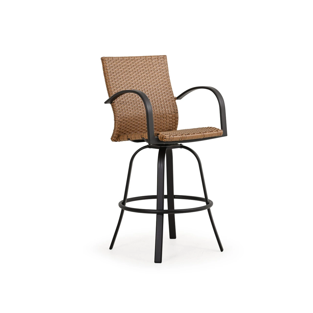 The Empire Outdoor Wicker Bar Height Stool has a contemporary style that’s designed for comfort. The bar stool is made with all aluminum frames that are dressed in a resin wicker weave with curved backs for lumbar support. Stools swivel on commercial grade mechanisms for added durability.