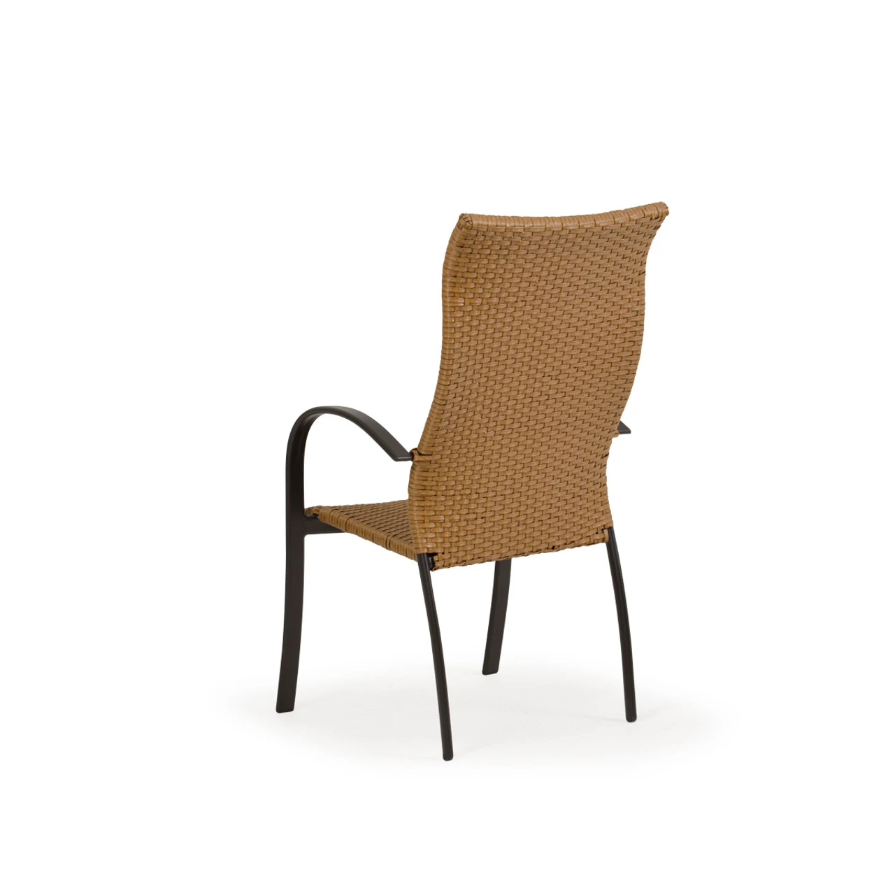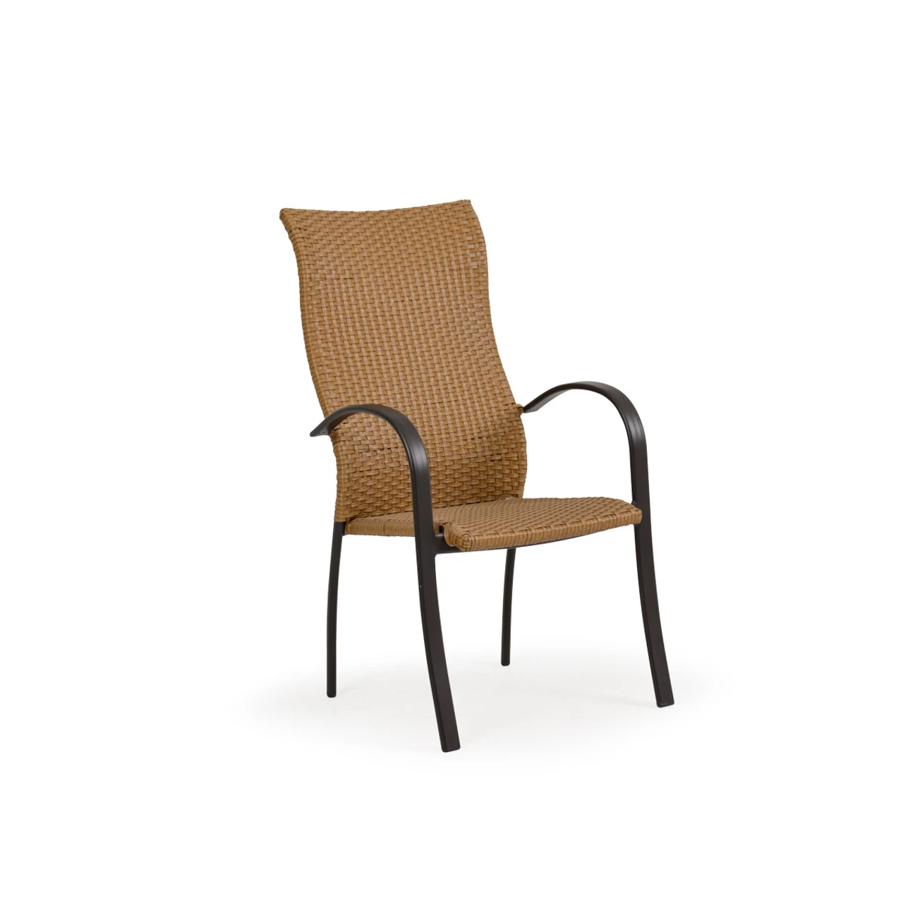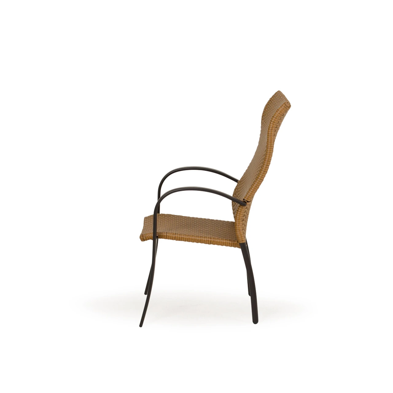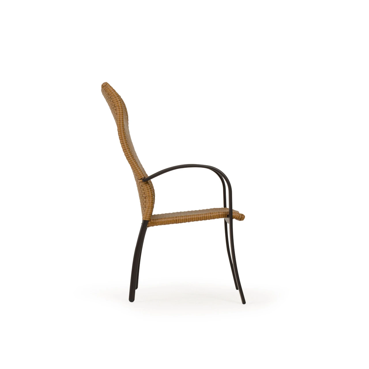 The Empire Outdoor Wicker High Back Dining Chair has a contemporary style that’s designed for comfort. The dining chair is made with all aluminum frames that are dressed in a resin wicker weave with curved backs for lumbar support.