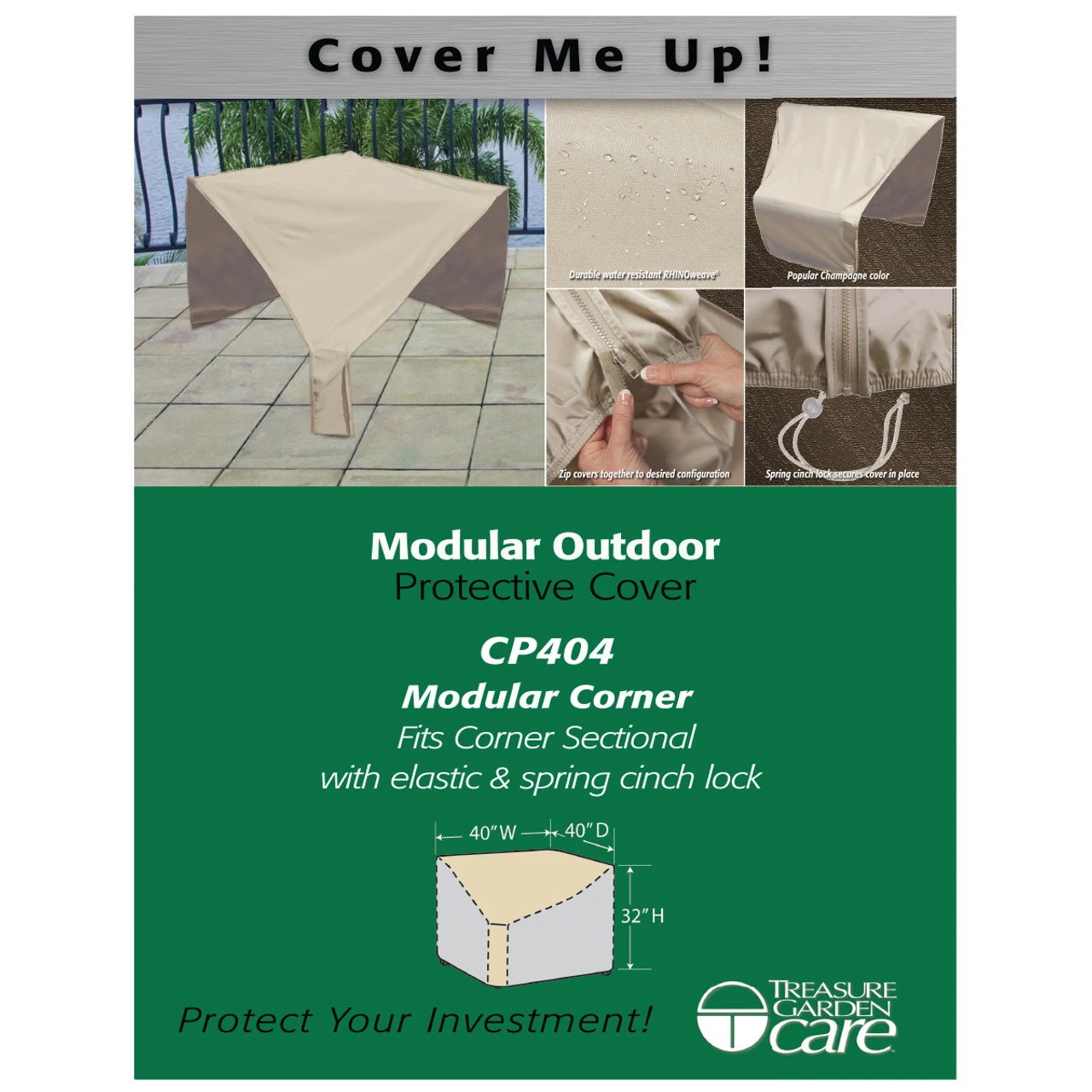 The Treasure Garden Protective Furniture Covers are made with RhinoWeave®, a Treasure Garden exclusive. Designed to be durable, breathable, and water resistant and will not crack or peel like vinyl.