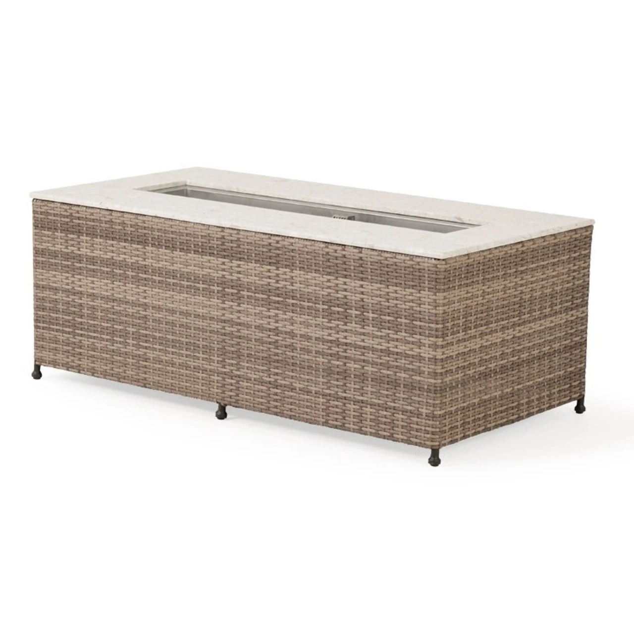 Designed for Florida living, the Garden Terrace Outdoor Rectangle Wicker Stone Top Fire Pit is a great addition to your outside space. The craftsmanship of hand-woven wicker over all aluminum frames that will not rust, this collection offers contemporary style with a stone top and cover at an affordable price.