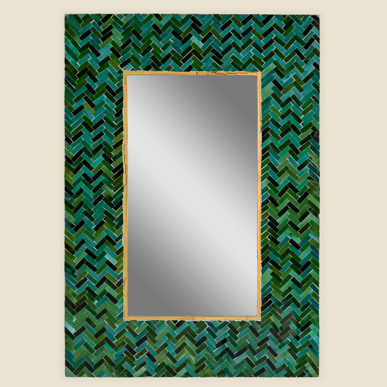 Can you see this mirror with a green and blue Mosaic frame in your house? We can, too!