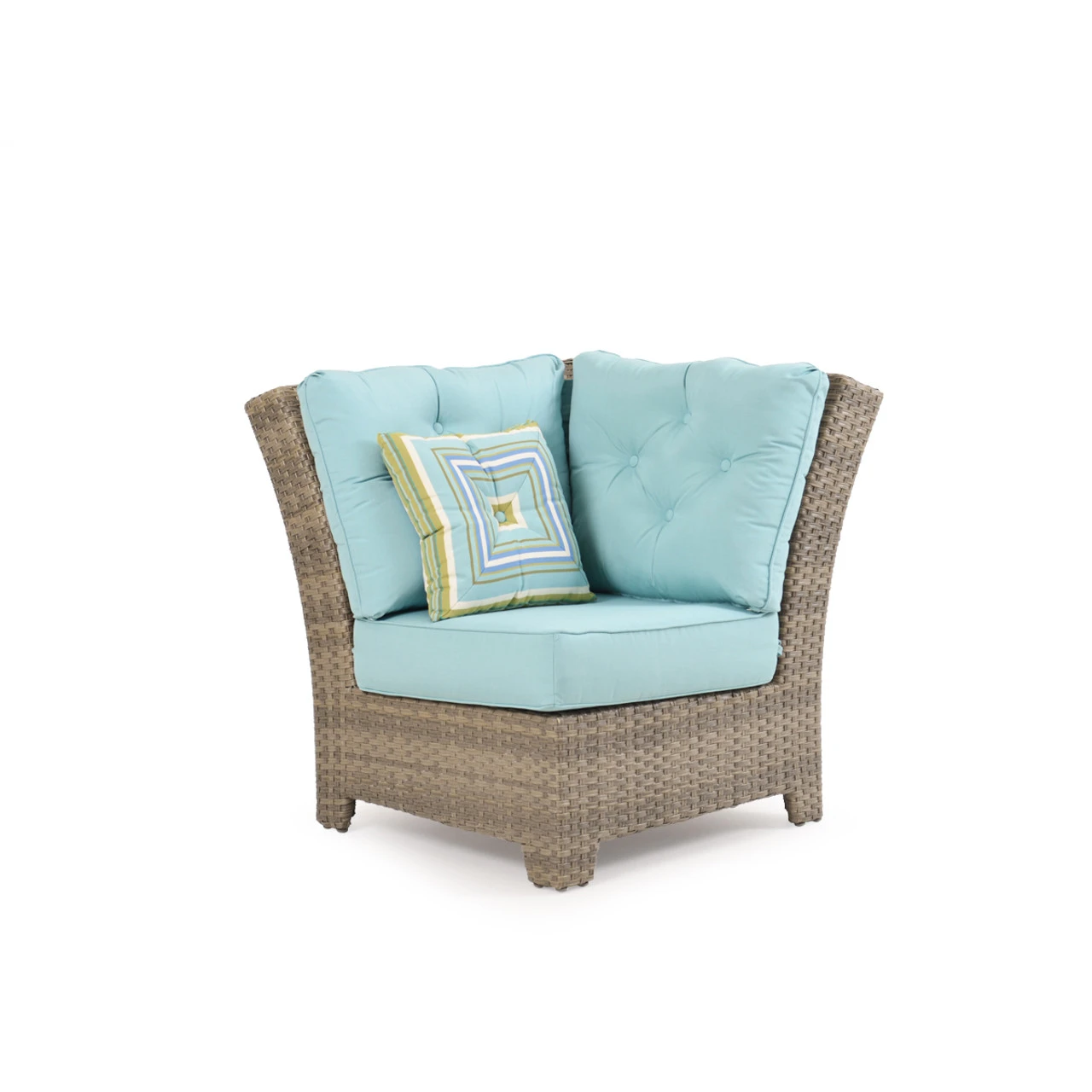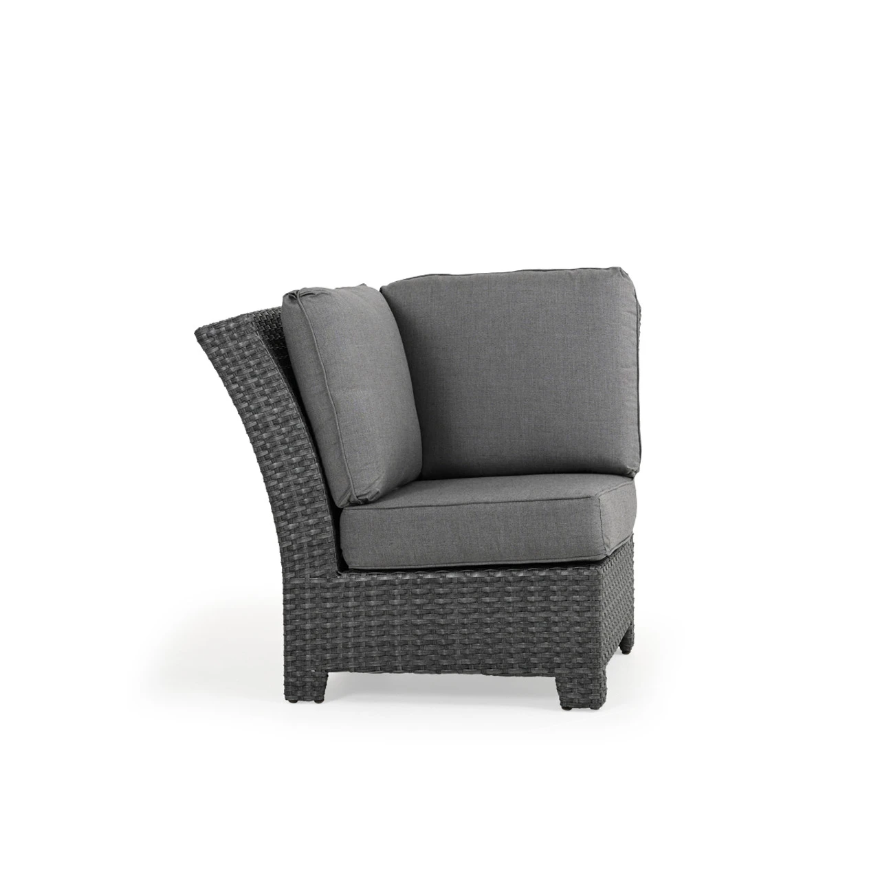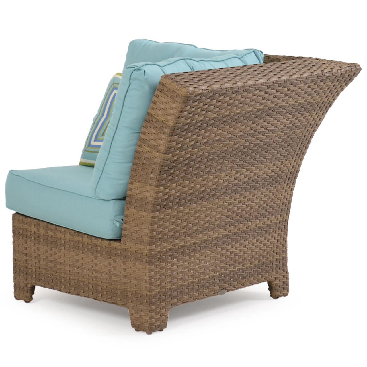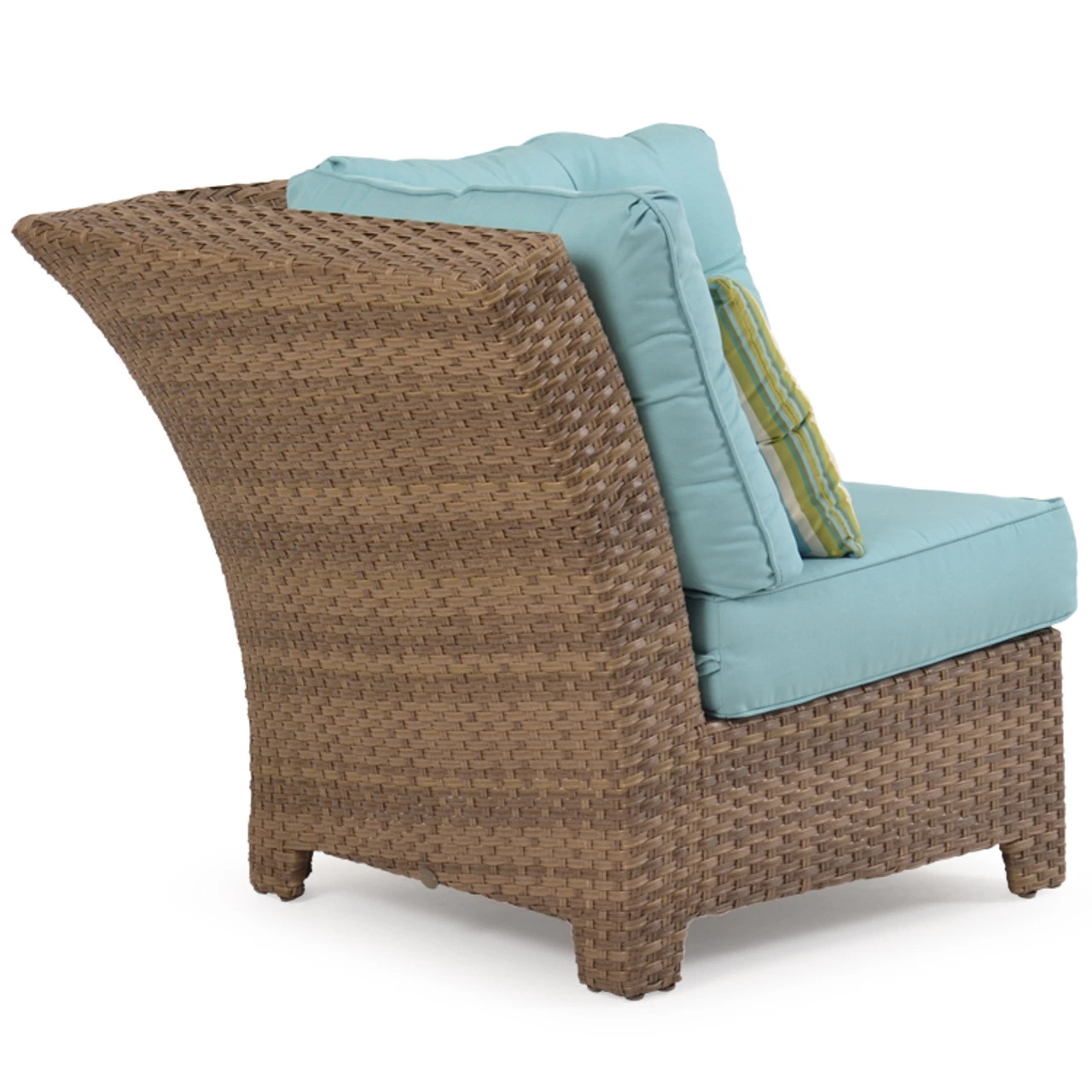 Our Kokomo Outdoor Wicker Wedge Chair has a gracefully curved back & tailored cushioning that create a timeless design with incredible comfort. These modular pieces attach at the bottom so that you can create the perfect fit for your space! Woven by hand over all aluminum frames, the extremely strong synthetic wicker strands are engineered for maximum durability. The Toss Pillows shown are optional and sold separately.