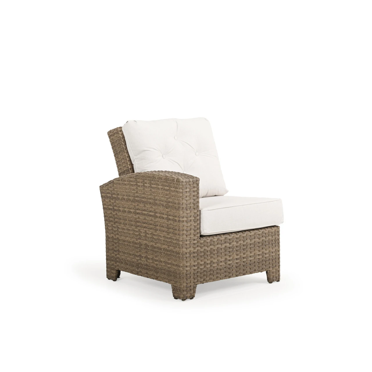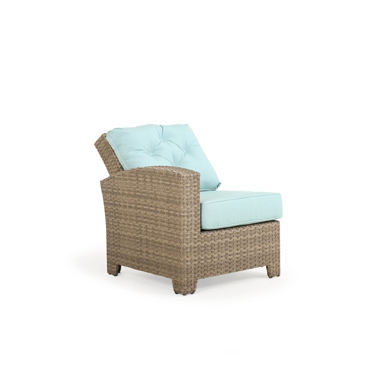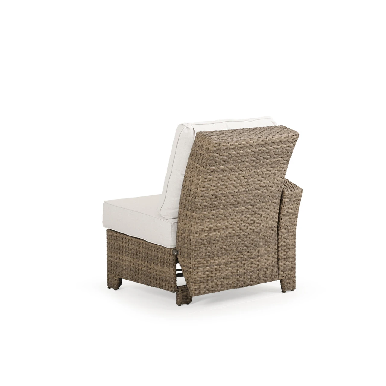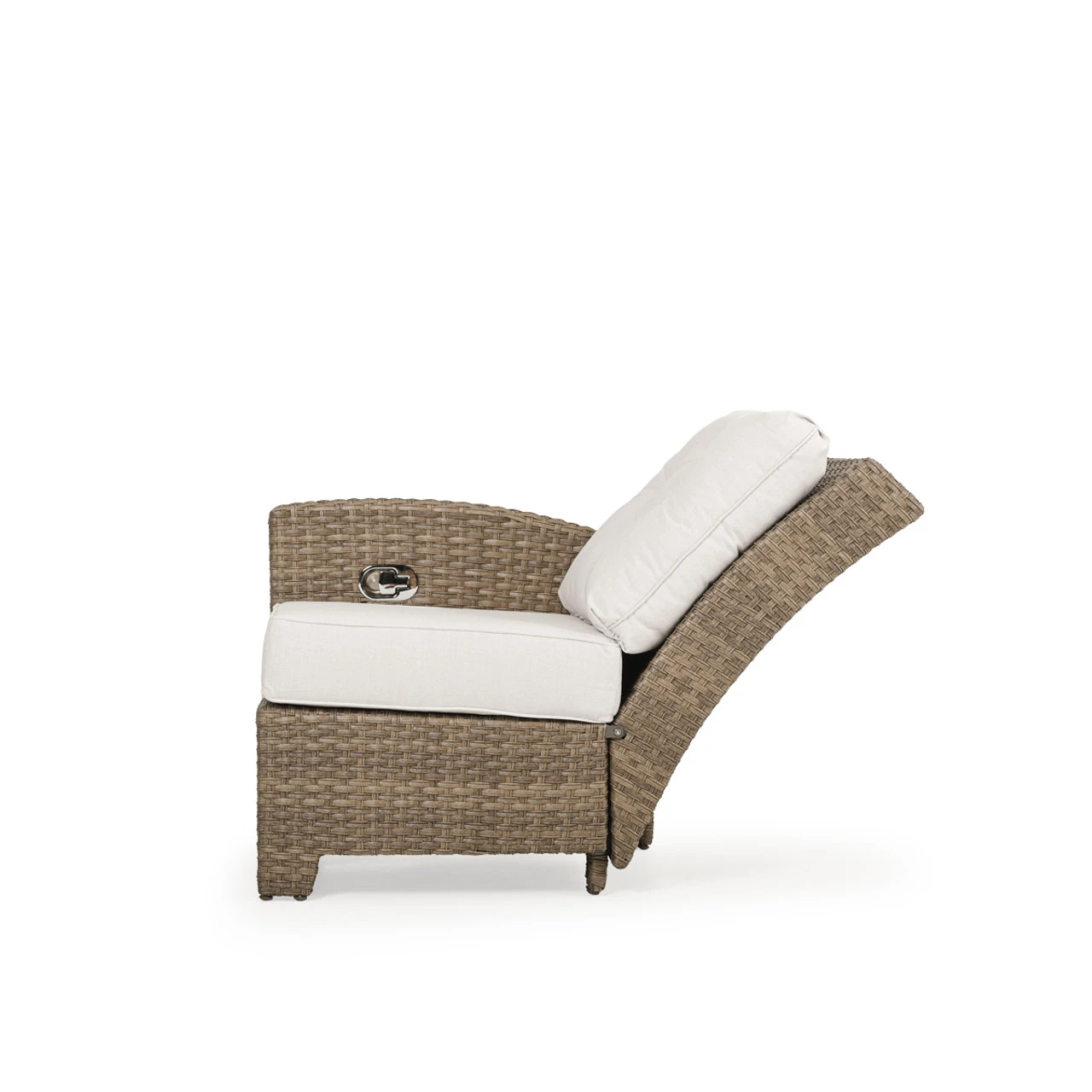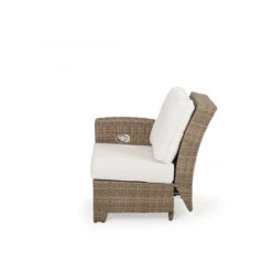 Our Kokomo Outdoor Wicker Left Facing (LF) Arm Reclining (recliner) Chair has a gracefully curved back tailored cushioning that create a timeless design with incredible comfort and the addition of motion. These modular pieces attach at the bottom so that you can create the perfect fit for your space! Woven by hand over all aluminum frames, the extremely strong synthetic wicker strands are engineered for maximum durability. The chair back reclines back, allowing you to find your perfect happy place.