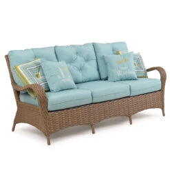 Graceful curved arms & tailored cushioning are a classic pairing that create a timeless design with incredible comfort. Engineered for maximum durability the extremely strong, synthetic wicker strands are hand woven over all aluminum frames. Any Toss Pillows shown are optional and sold separately.