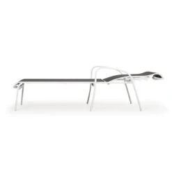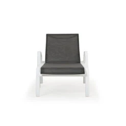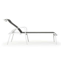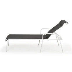 Madeira Outdoor Sling Chaise Lounge In Textured White With Dupione Smoke Sling