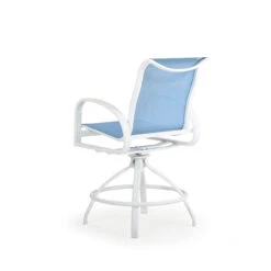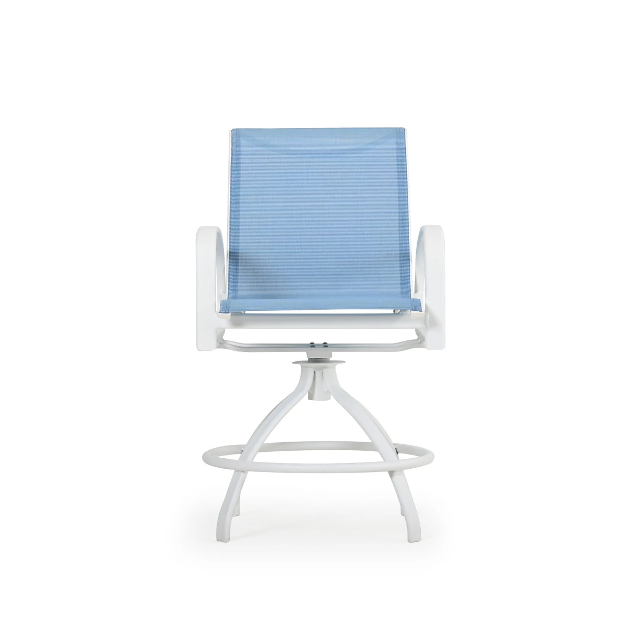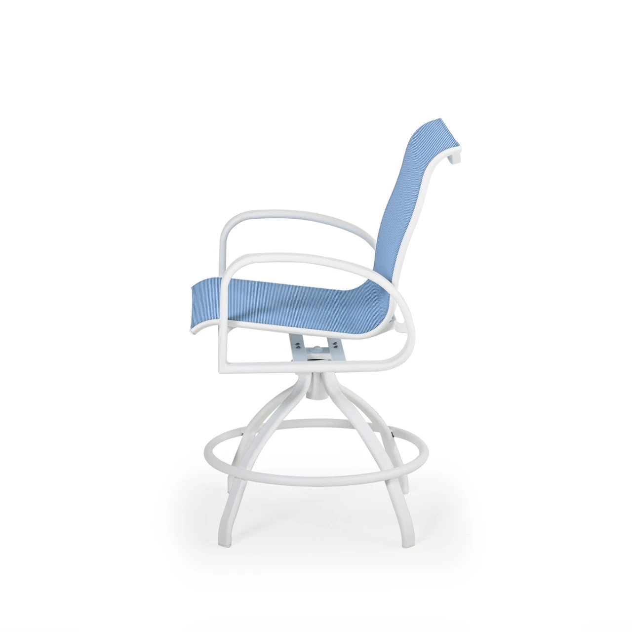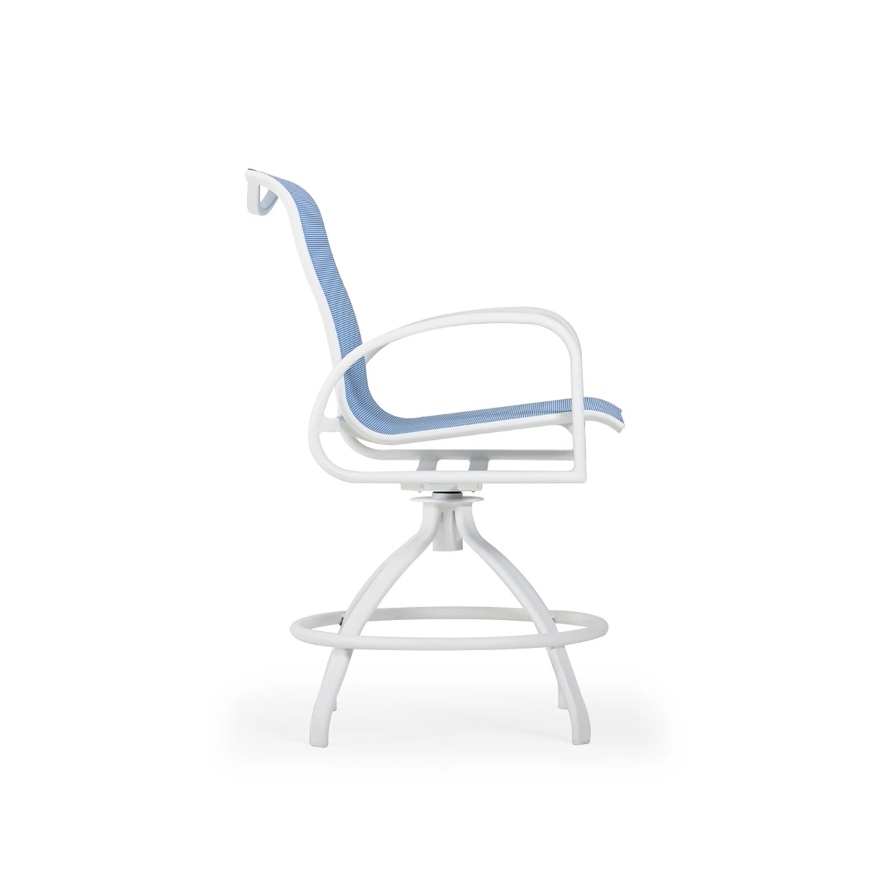 Madeira Outdoor Sling Counter Stool In Textured White With Dupione Poolside Sling