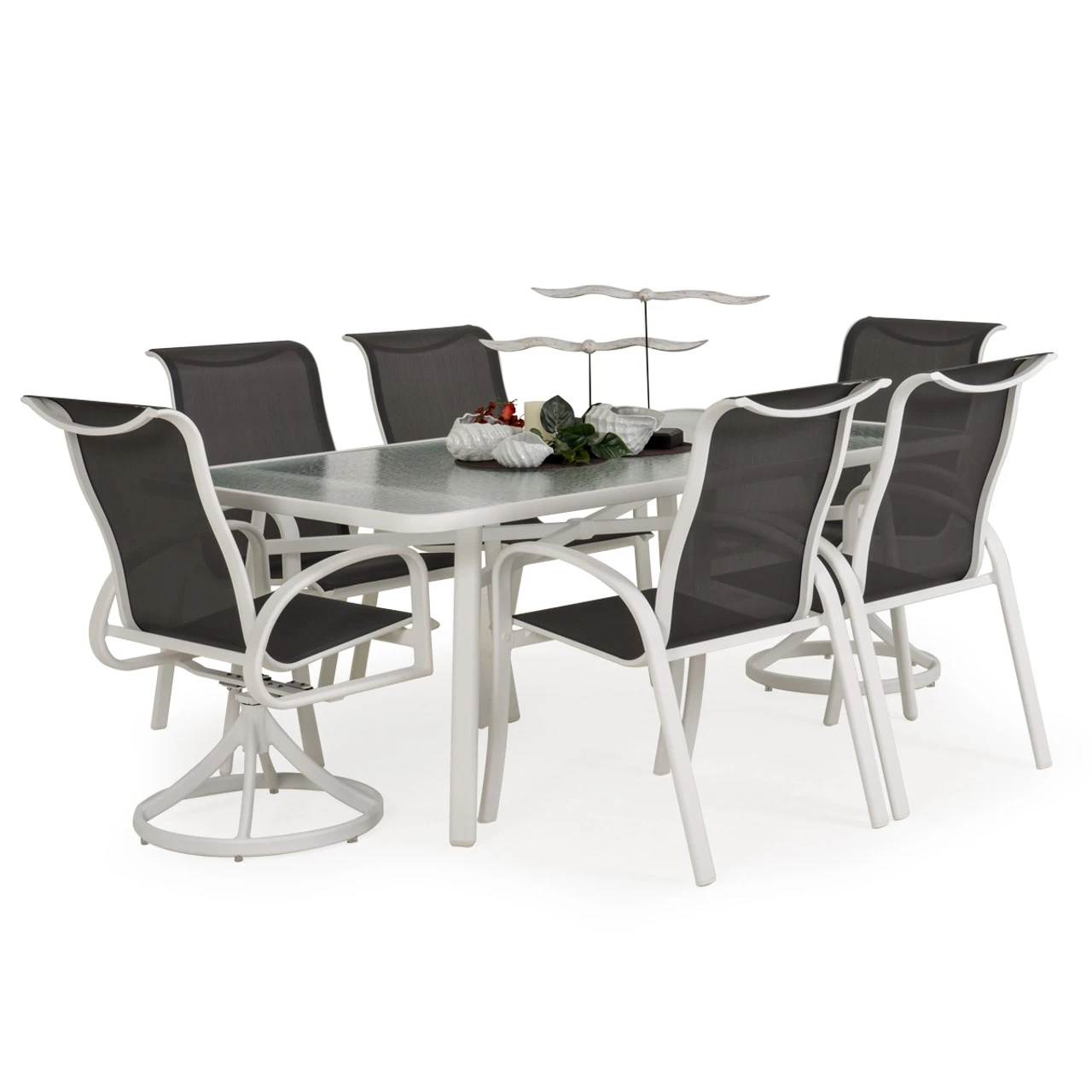 The Madeira sling dining chair is an exceptional value and is the perfect versatile addition to your patio. Built with easy maintenance in mind, the aluminum frames will not rust and today’s powder coat finishing technology will keep your set looking great for years.