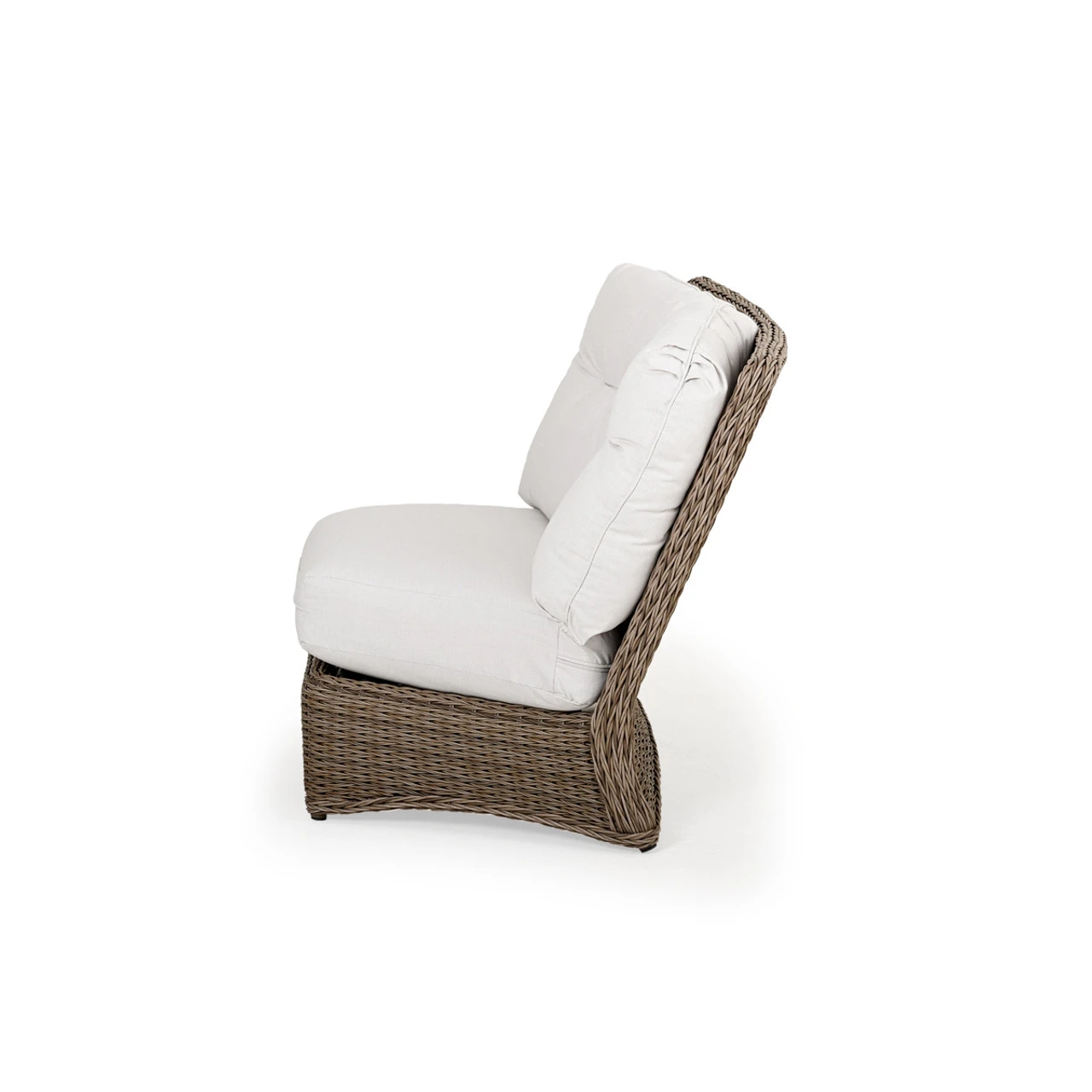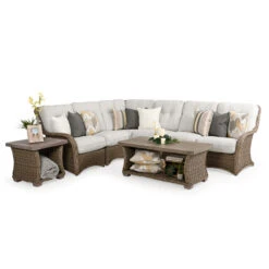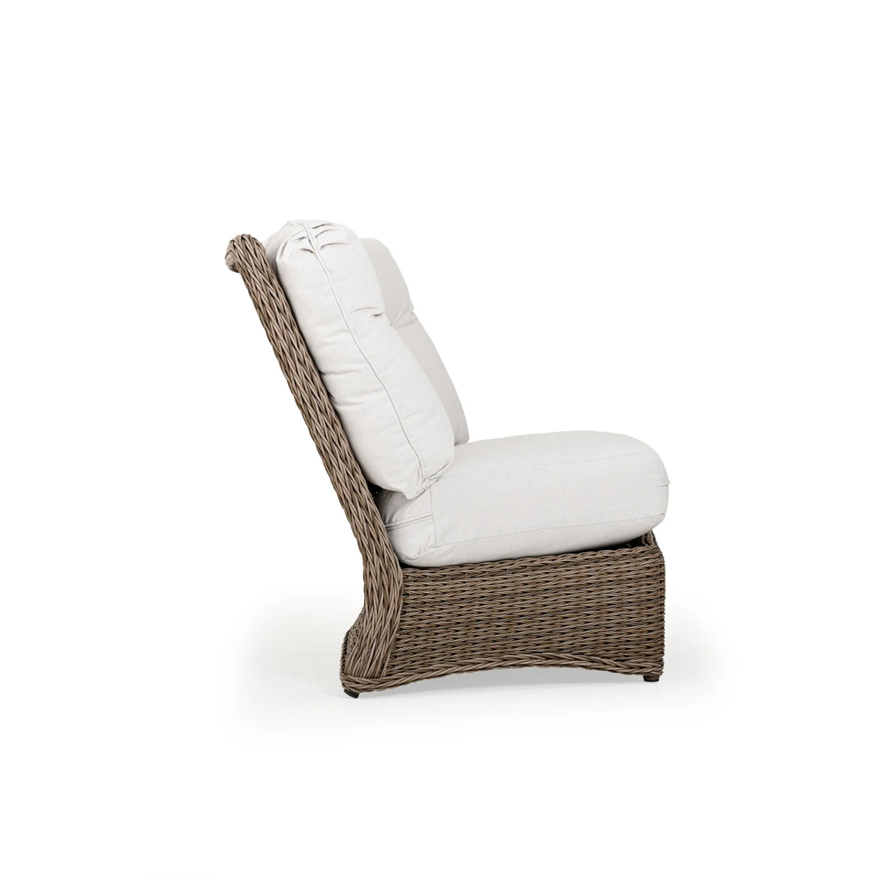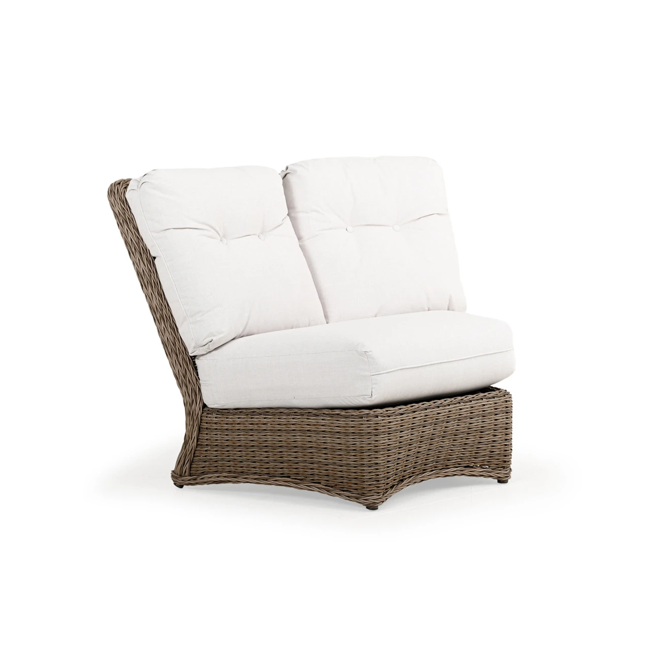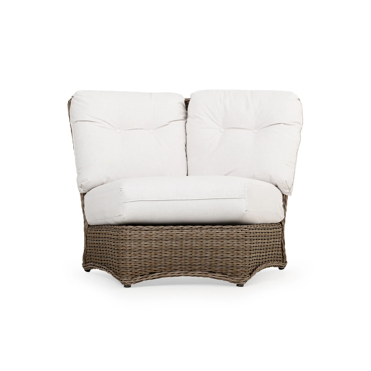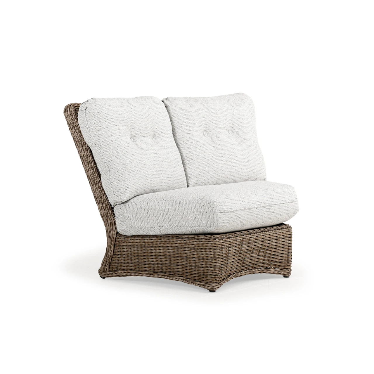 Maldives Outdoor Wicker 45 Degree Wedge Chair is a great modular piece that allows you to control how you want your furniture paired. This twisted synthetic weave is often mistaken for natural materials because of its color & richness. Use the modular sectional pieces to find the best fit for your space. Any Toss Pillows shown are optional and sold separately.