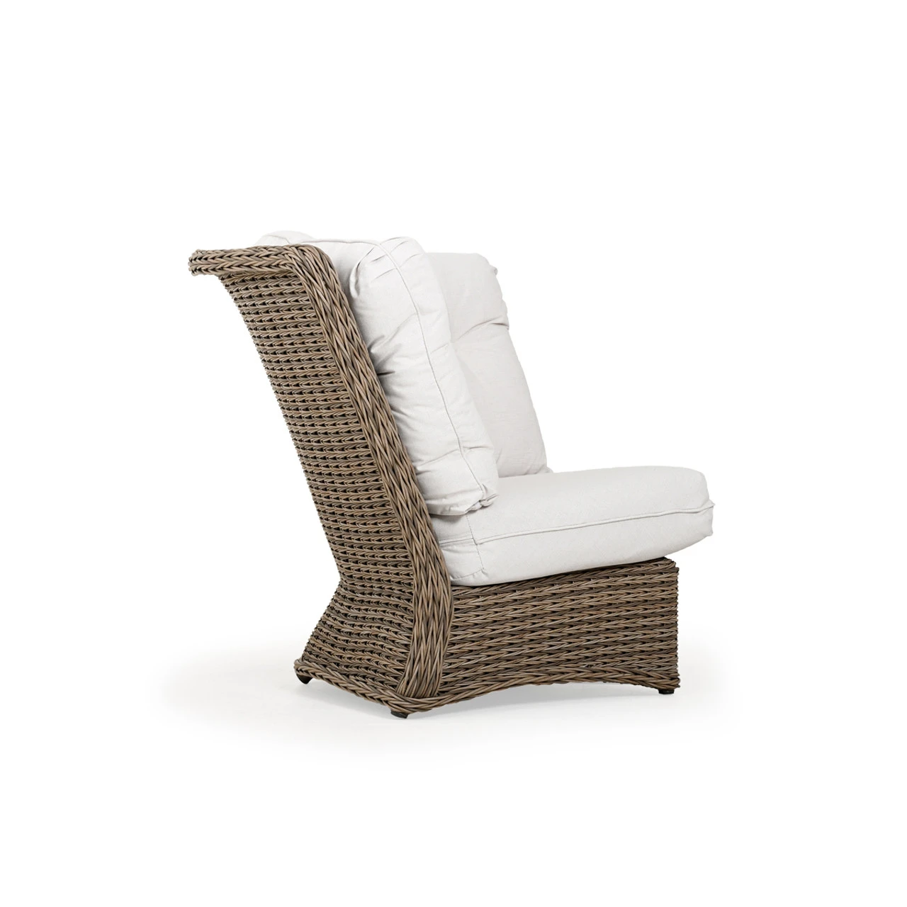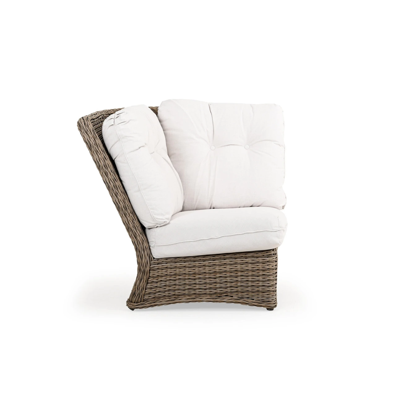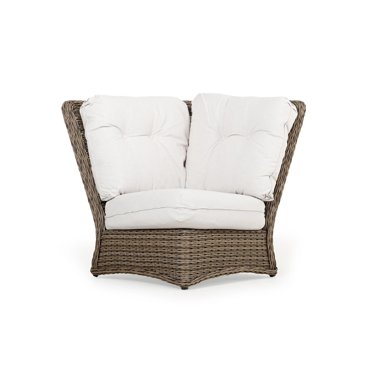 Maldives Outdoor Wicker 90 Degree Wedge Chair is a great modular piece that allows you to control how you want your furniture paired. This twisted synthetic weave is often mistaken for natural materials because of its color & richness. Use the modular sectional pieces to find the best fit for your space. Any Toss Pillows shown are optional and sold separately.