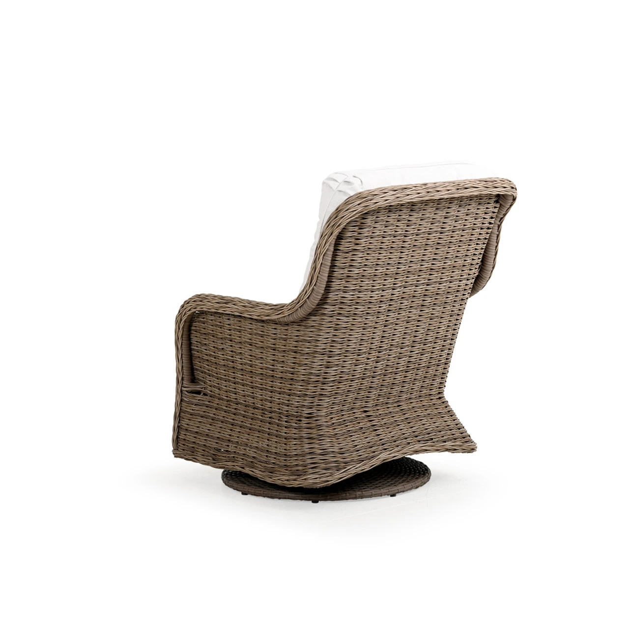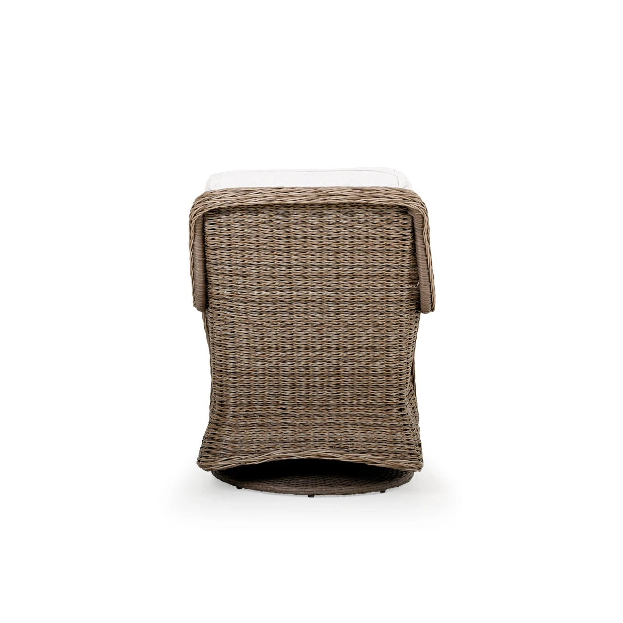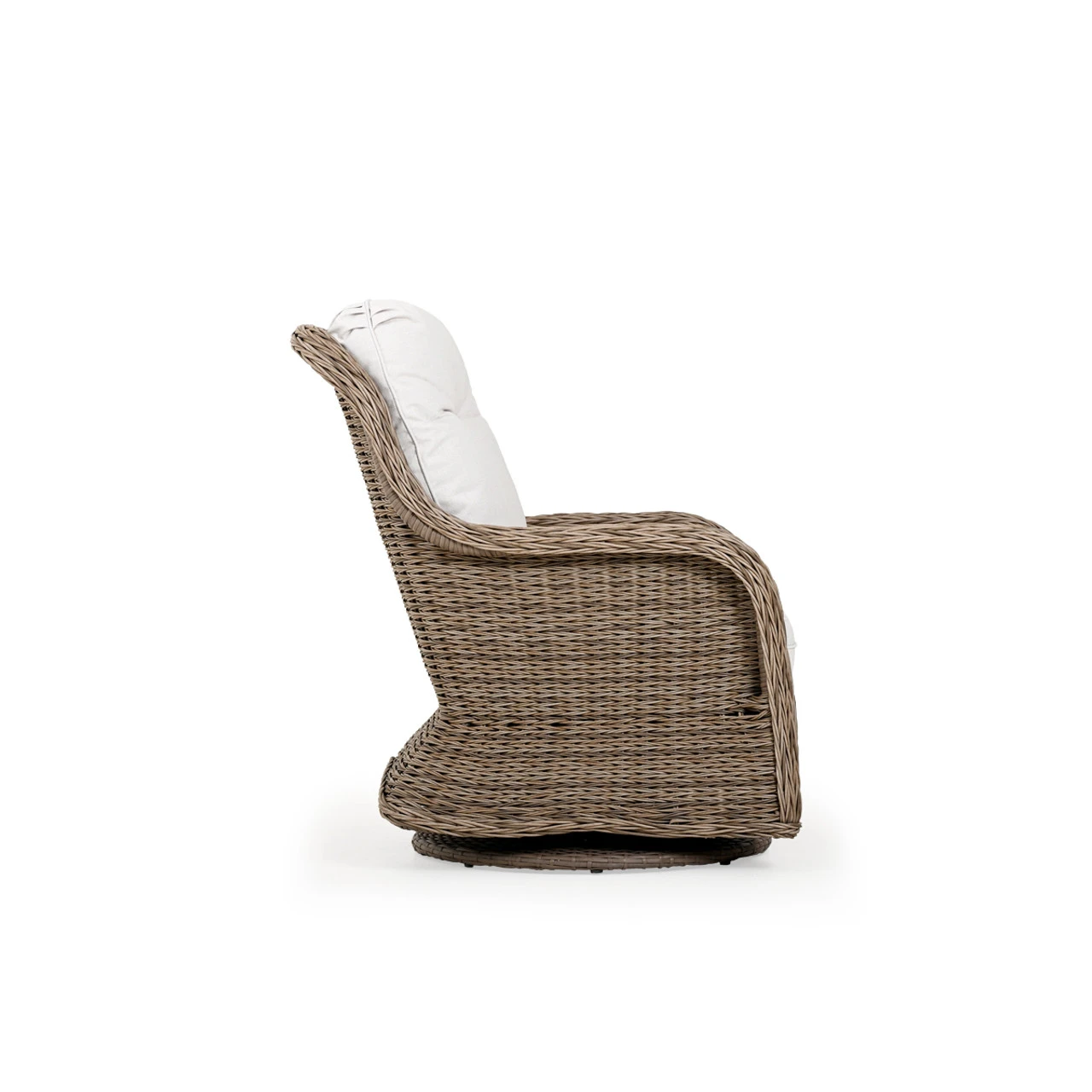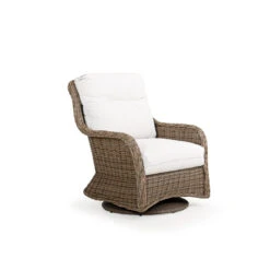 The Maldives Outdoor Wicker Lounge Chair is a beautifully sophisticated piece that provides ultimate comfort with the addition of motion. This twisted synthetic weave is often mistaken for natural materials because of its color & richness. Use the modular sectional pieces to find the best fit for your space.