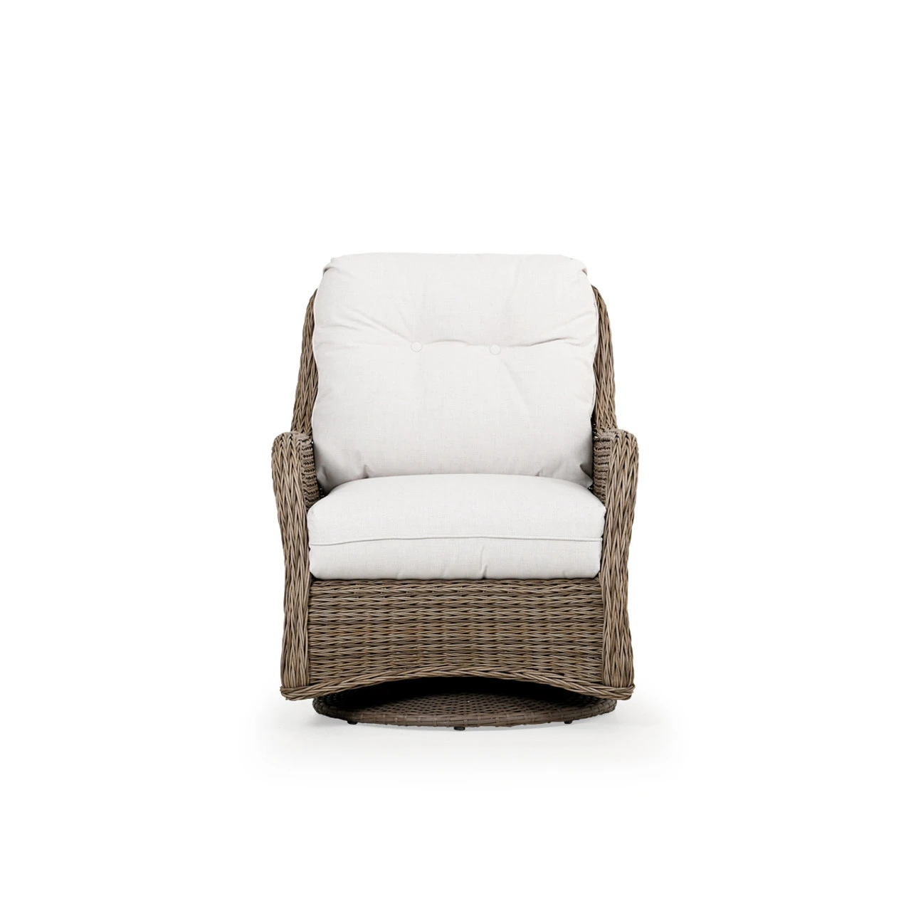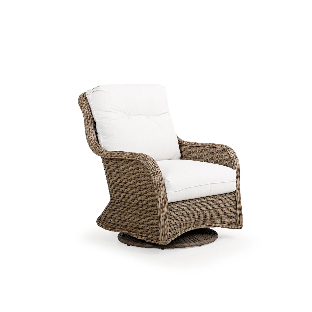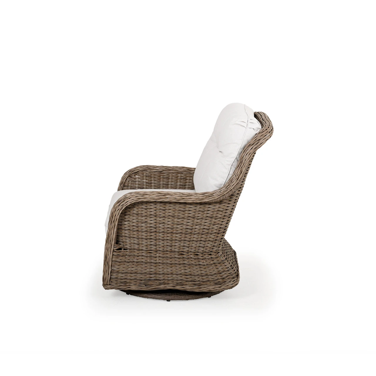 The Maldives Outdoor Wicker Lounge Chair is a beautifully sophisticated piece that provides ultimate comfort with the addition of motion. This twisted synthetic weave is often mistaken for natural materials because of its color & richness. Use the modular sectional pieces to find the best fit for your space.