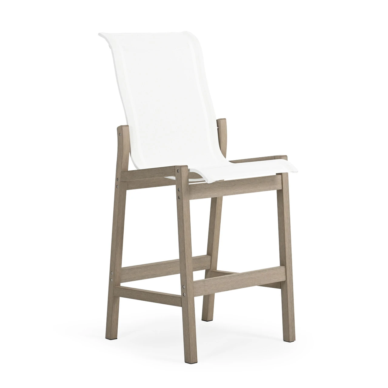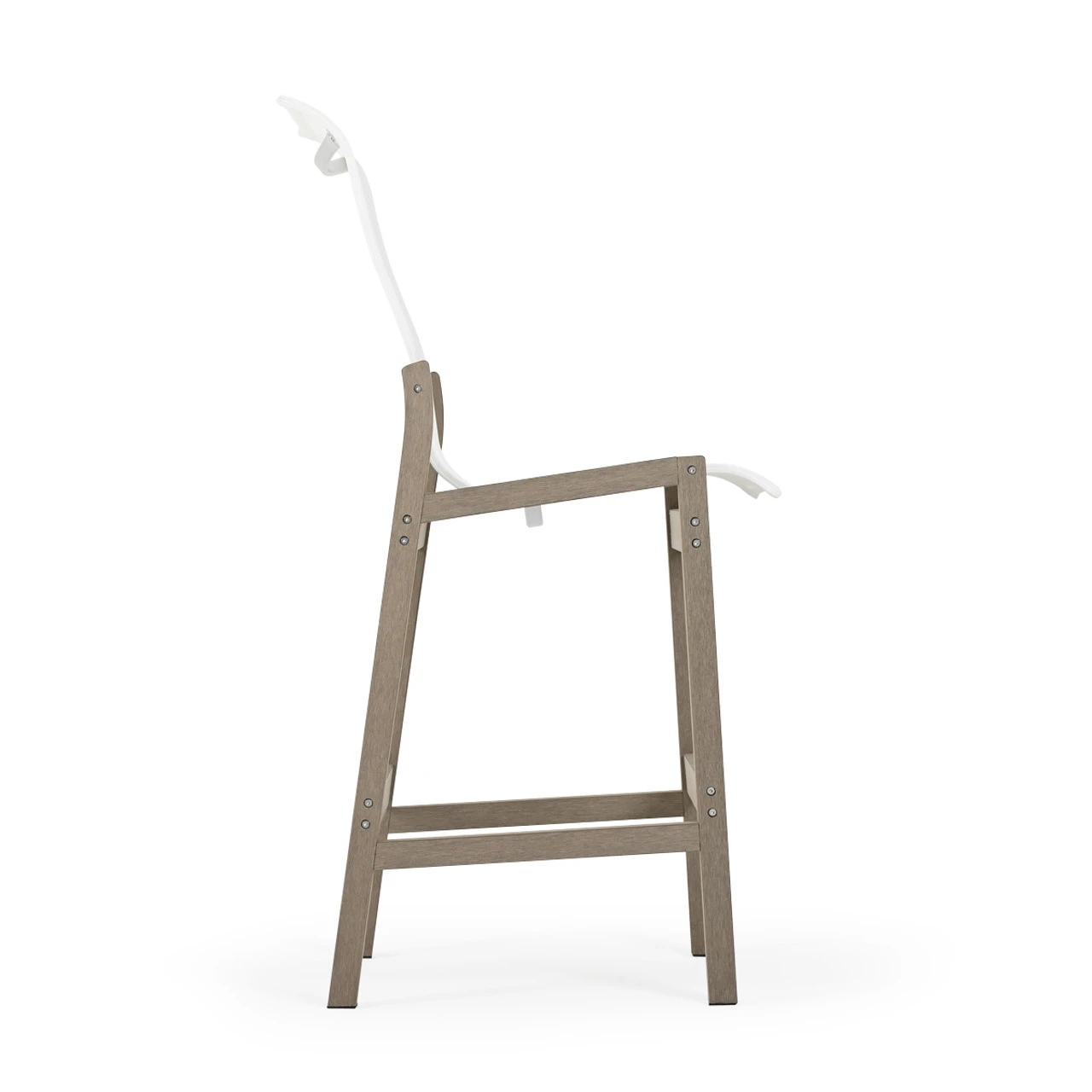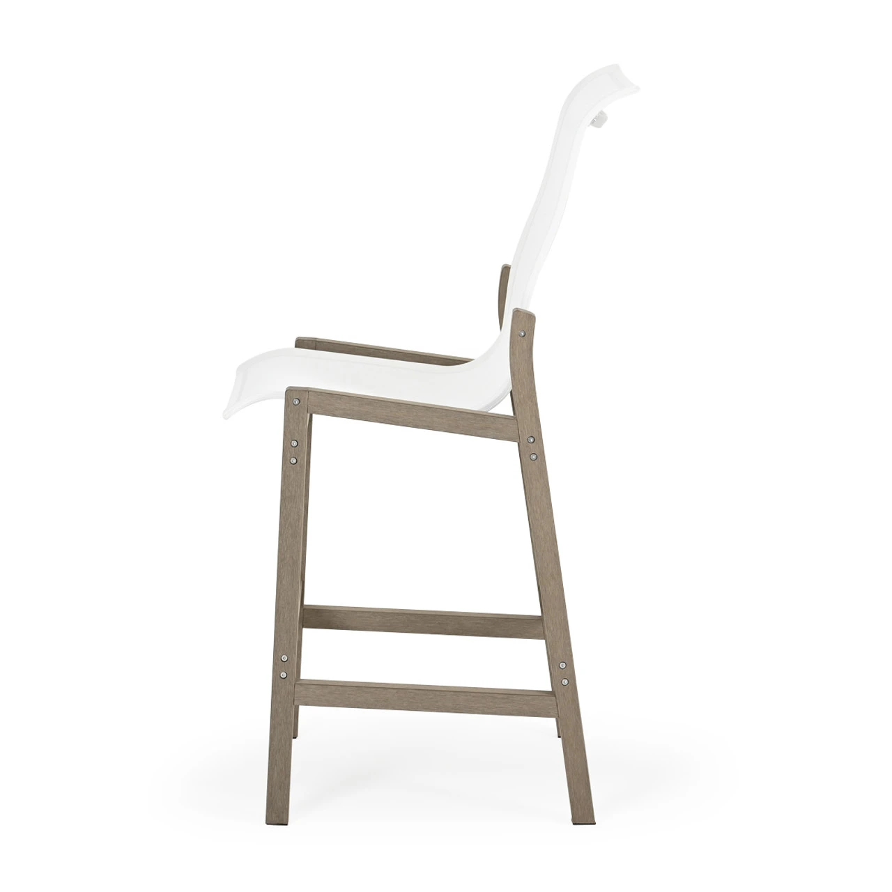 The gorgeous warm hues and texture of this sling bar chair is perfect to blend with our Maui Collection. Our Weathered Teak & Vintage Walnut PoliSoulâ„¢ timber is like no other faux wood you have seen before, dense enough to be structurally sound and UV resistant. Our Maui Collection can stand up to the harsh sun, salty waves and strong winds season after season.