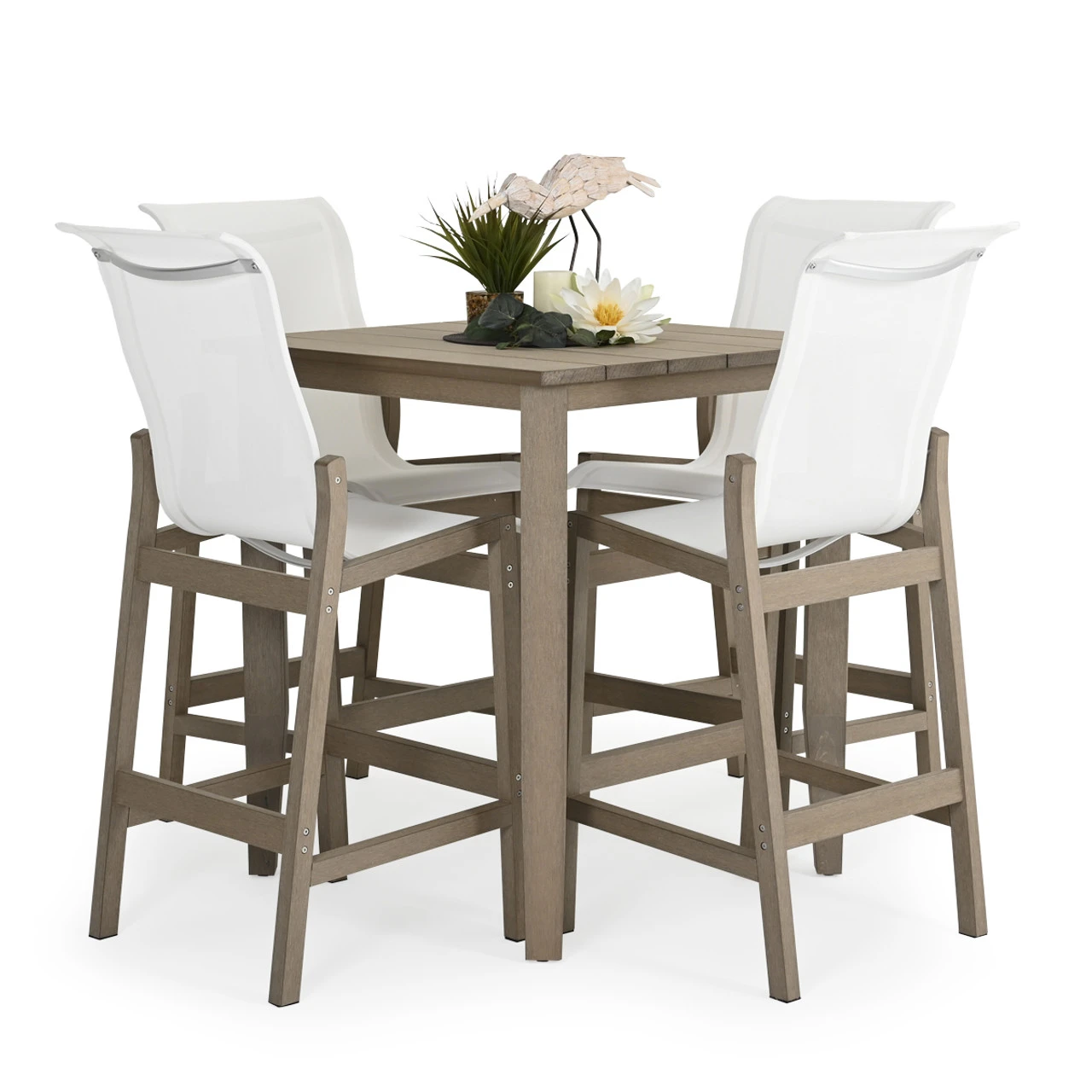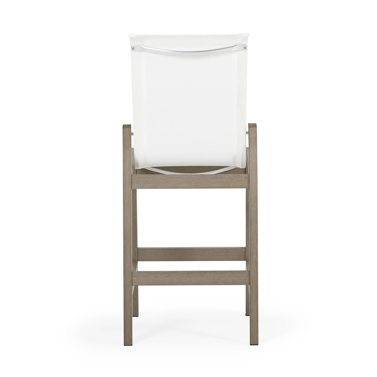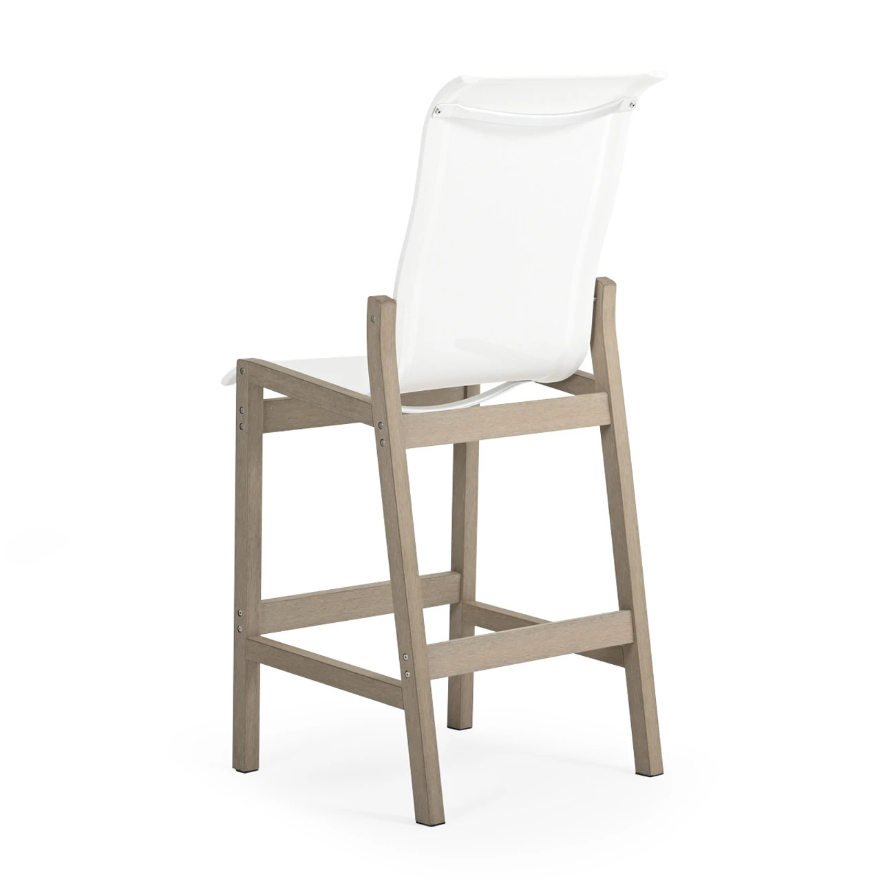 The gorgeous warm hues and texture of this sling bar chair is perfect to blend with our Maui Collection. Our Weathered Teak & Vintage Walnut PoliSoulâ„¢ timber is like no other faux wood you have seen before, dense enough to be structurally sound and UV resistant. Our Maui Collection can stand up to the harsh sun, salty waves and strong winds season after season.