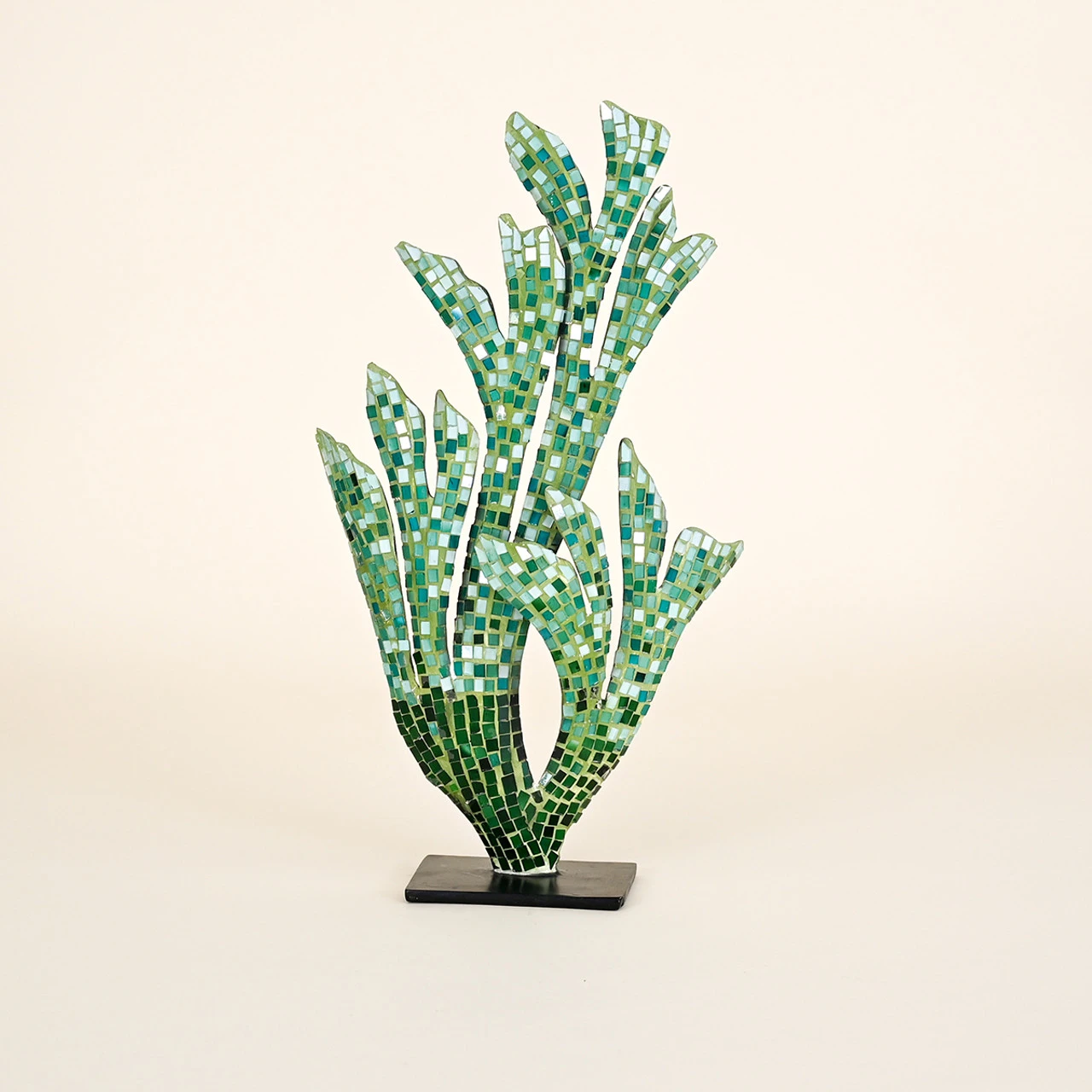 Head to the ocean with this hand-crafted metal coral with mosaic tiles.