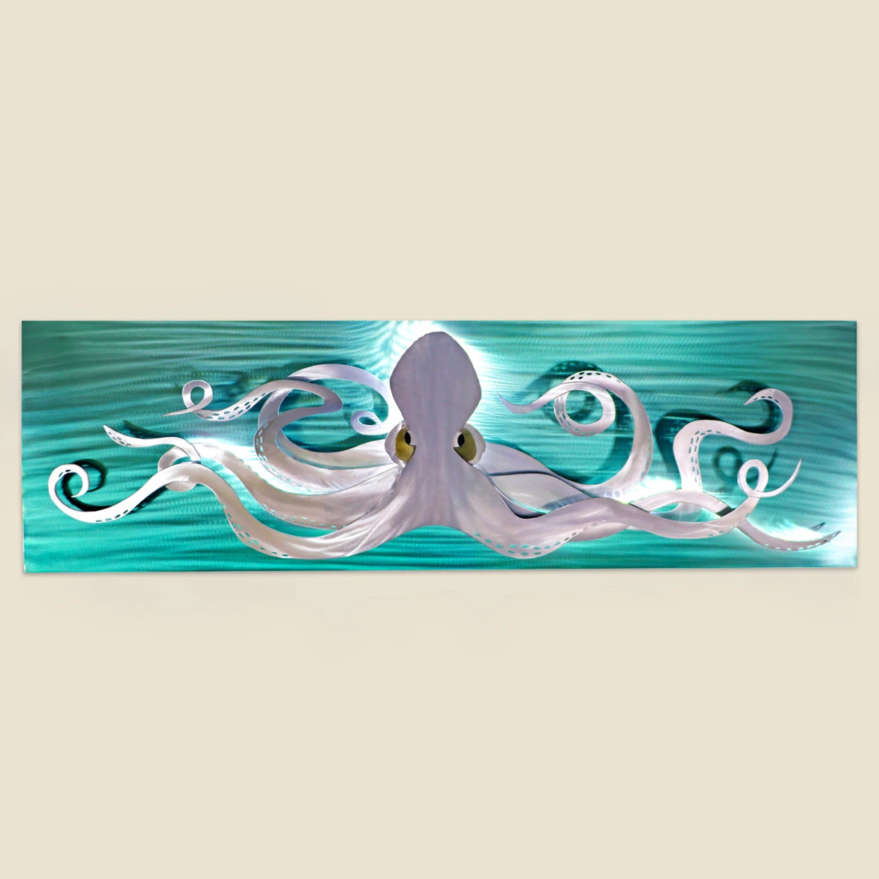Large metal wall art of octopus with integrated LED light included. Will become a conversation piece for all to see!