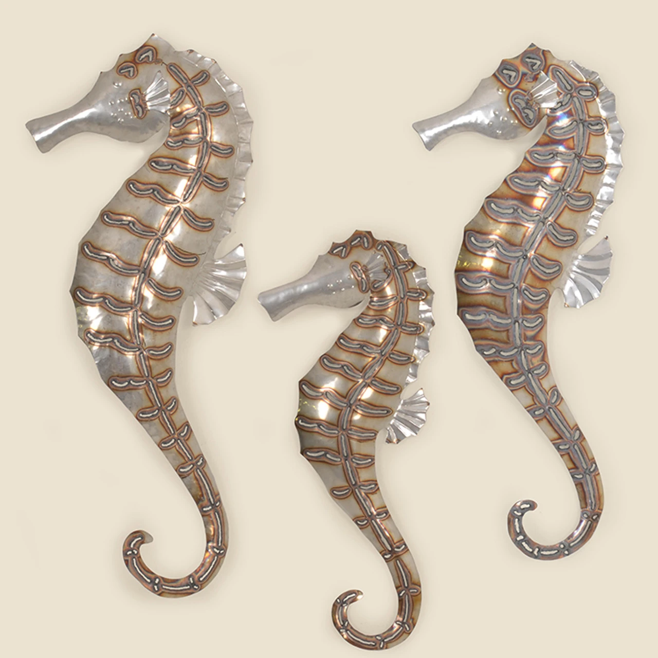Outdoor Heat Treated Stainless Steel Set Of Three Seahorses are exotic and fun. Add them to any outdoor space