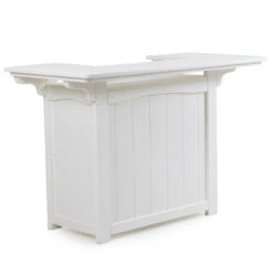 This Oceanside Poly Lumber Party Bar features three shelves along with a service bar making it perfect for outdoor entertaining. Fabricated from high-density polyethylene, makes this highly resistant to mold and mildew allowing you to focus more on relaxing than on maintenance. Mix and match with bar stools in one of our 24 vibrant finishes!