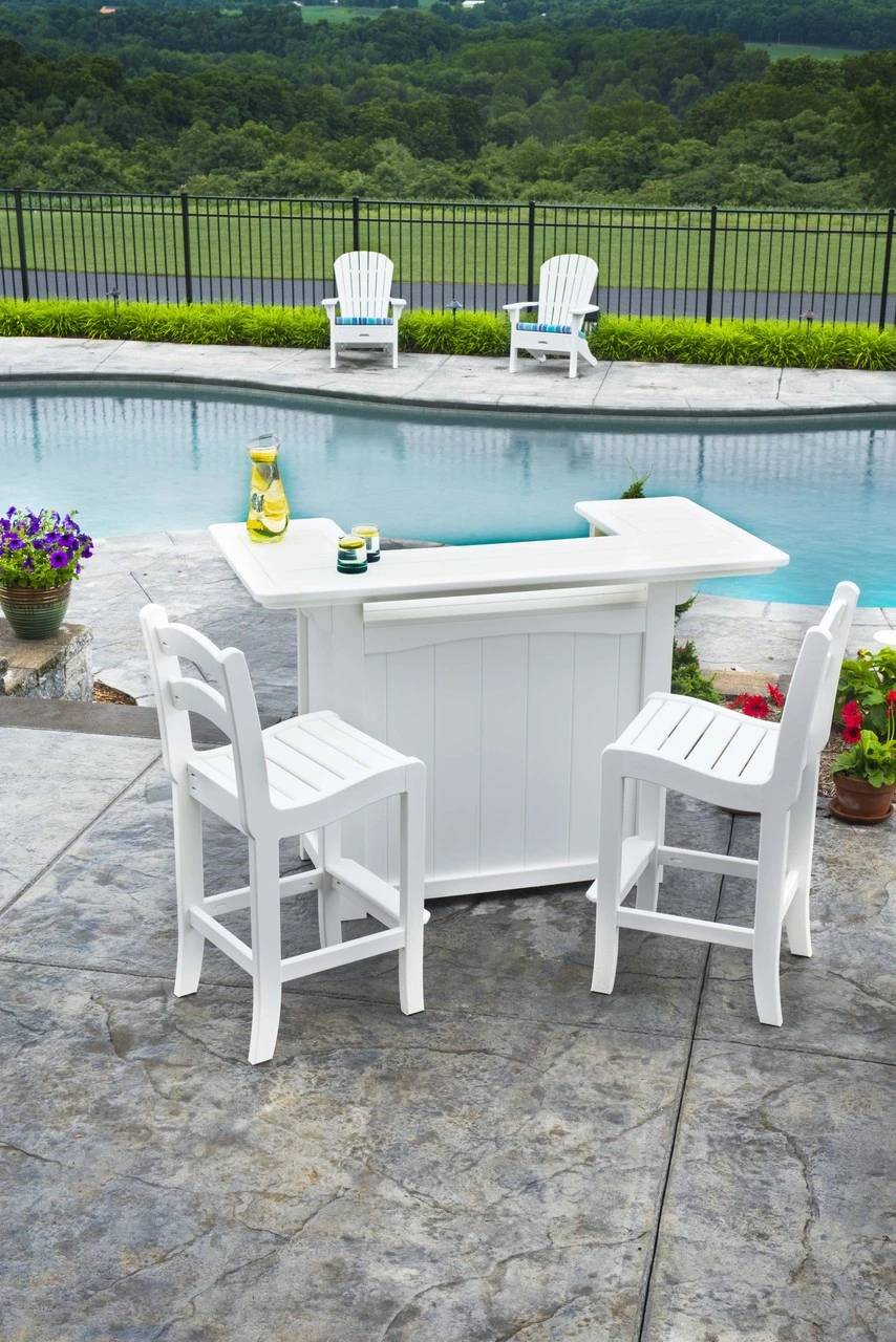 This Oceanside Poly Lumber Party Bar features three shelves along with a service bar making it perfect for outdoor entertaining. Fabricated from high-density polyethylene, makes this highly resistant to mold and mildew allowing you to focus more on relaxing than on maintenance. Mix and match with bar stools in one of our 24 vibrant finishes!
