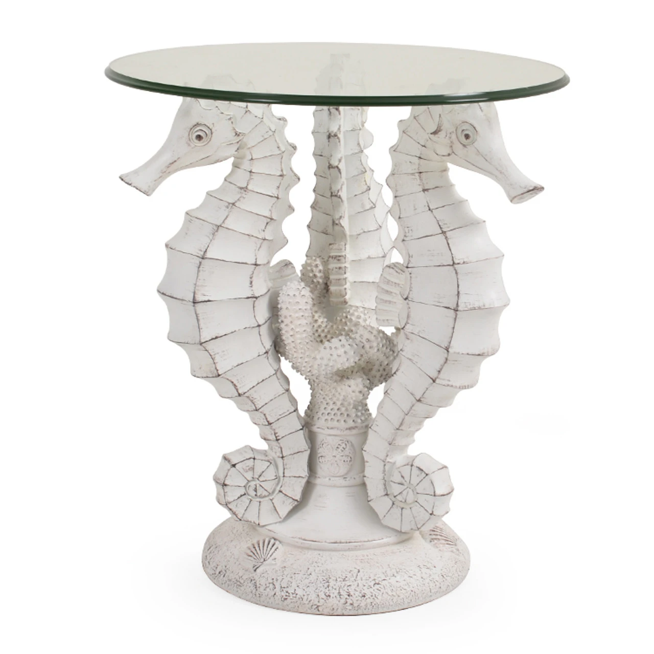 Our realistic Seahorse Side Table is painted by hand, making each piece one of a kind. Constructed of durable resin, this side table is able to withstand the weather season after season!