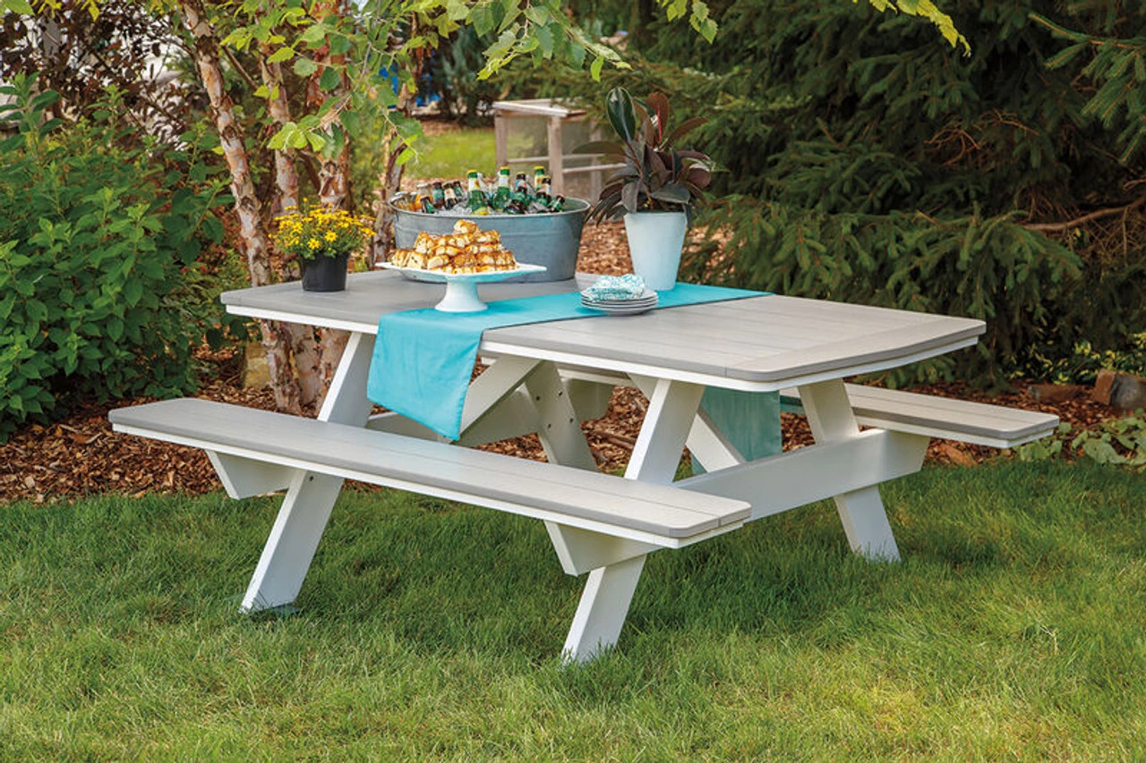 This Poly Lumber Picnic Set is attractive and versatile. Perfect for parks, businesses, and even your own backyard – dine al fresco! Customize it to your aesthetic with multiple color options. Fabricated from high-density polyethylene, makes this highly resistant to mold and mildew allowing you to focus more on relaxing than on maintenance. Mix and match with other pieces in any of our 24 vibrant finishes!