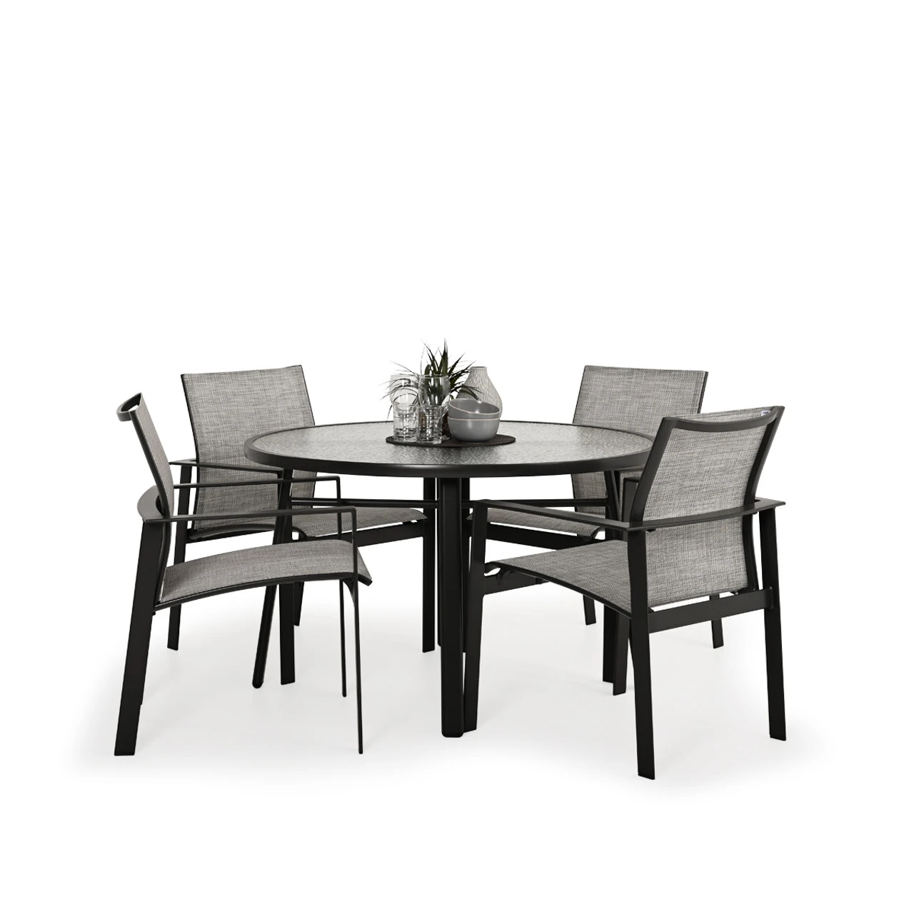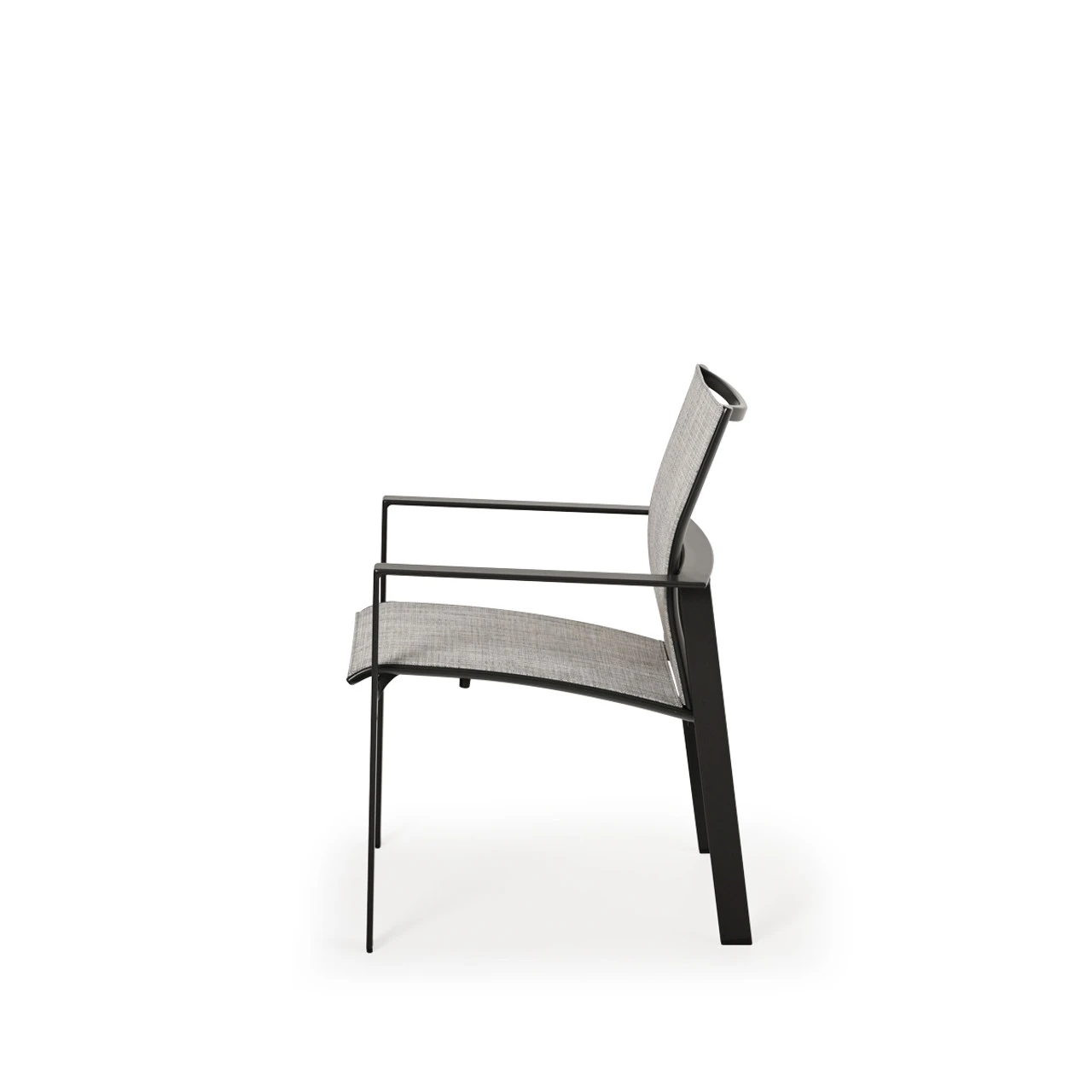 The Reef sling dining chair is an exceptional value and is the perfect versatile addition to your patio. Built with easy maintenance in mind, the aluminum frames will not rust and today’s powder coat finishing technology will keep your set looking great for years.