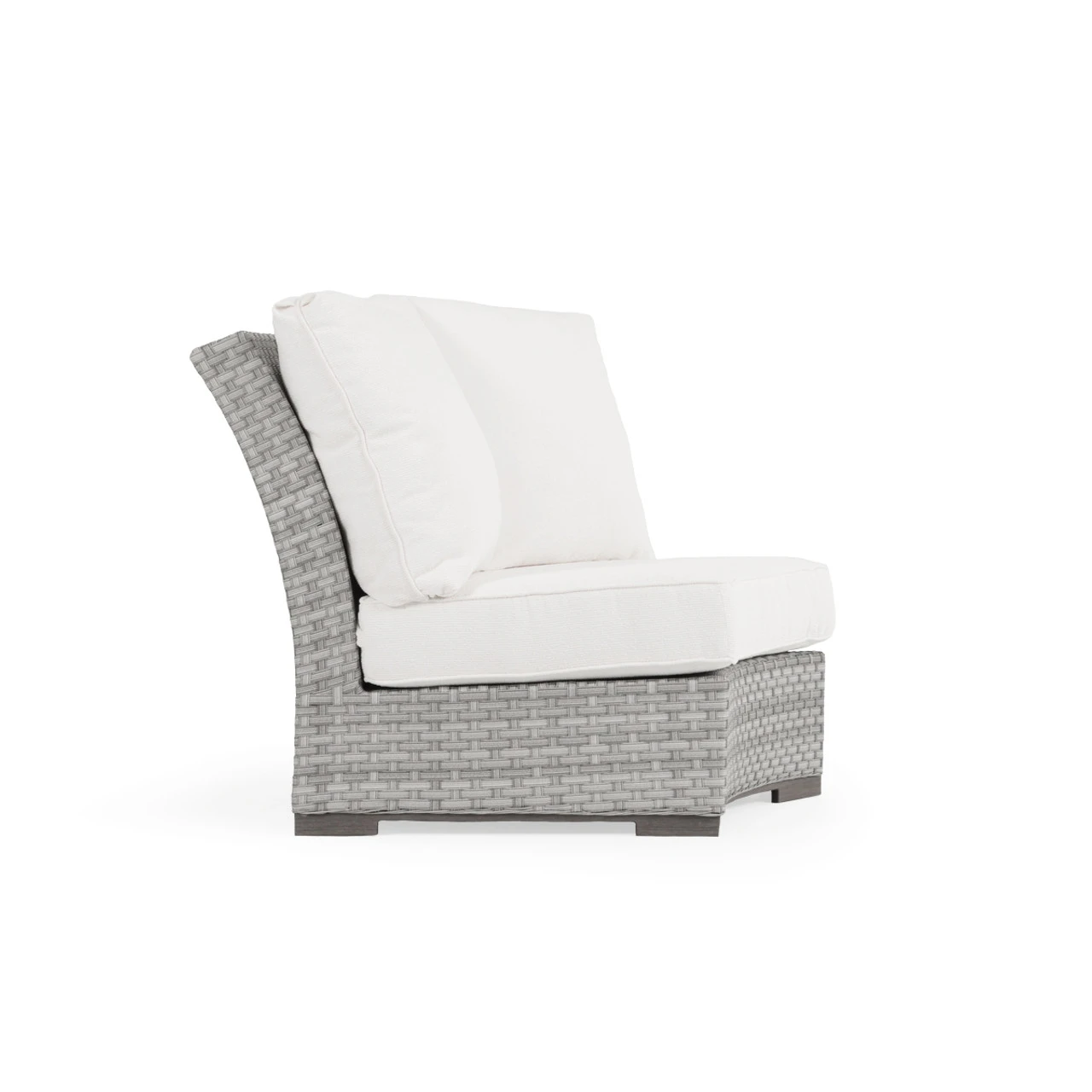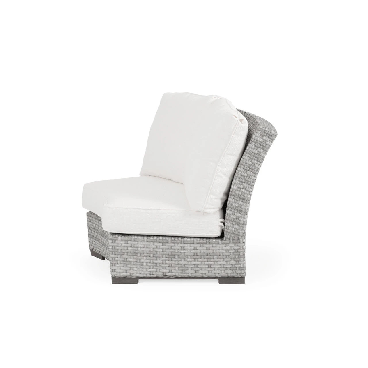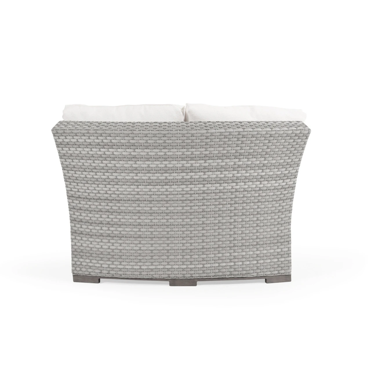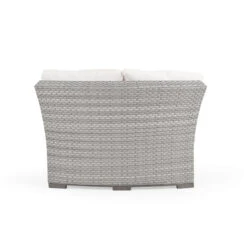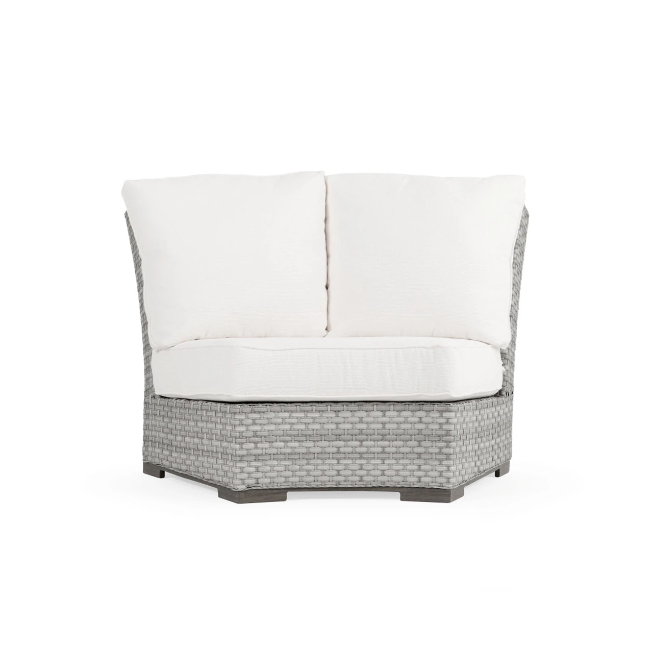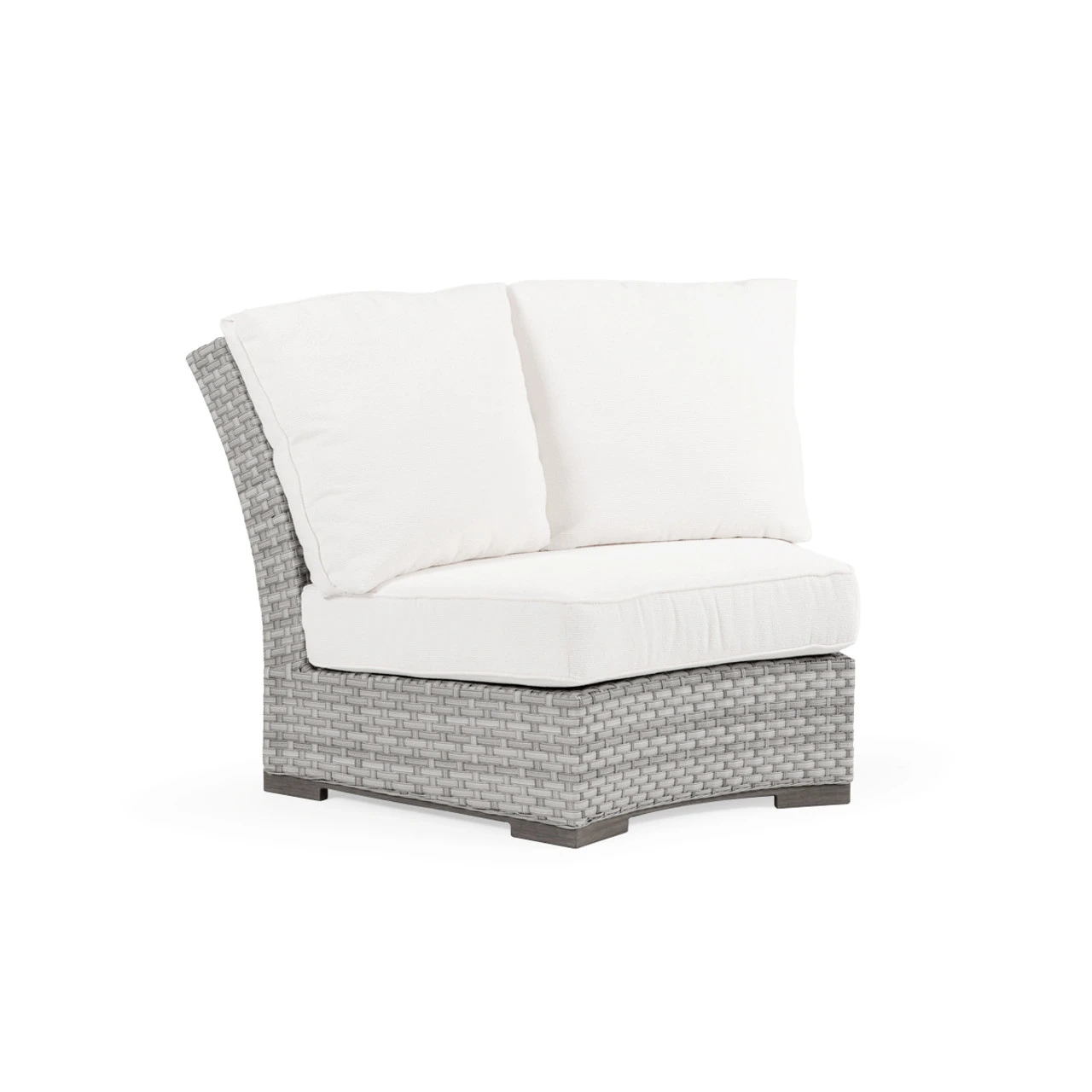 Generous size, matched with the incredible comfort of our handcrafted USA made cushions make this collection a retreat. The all‐weather wicker is hand woven over aluminum frames that will not rust and each piece is finished with PoliSoul™ arms and feet. This 45 Degree Corner Wedge Chair provides a gentle curve for your sectional.