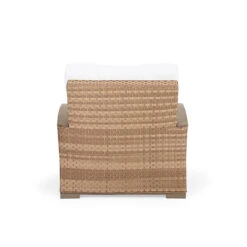 Generous size, matched with the incredible comfort of our handcrafted USA made cushions make this collection a retreat. The all‐weather wicker is hand woven over aluminum frames that will not rust and each piece is finished with PoliSoul™ arms and feet.