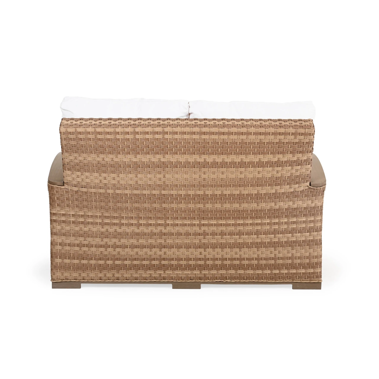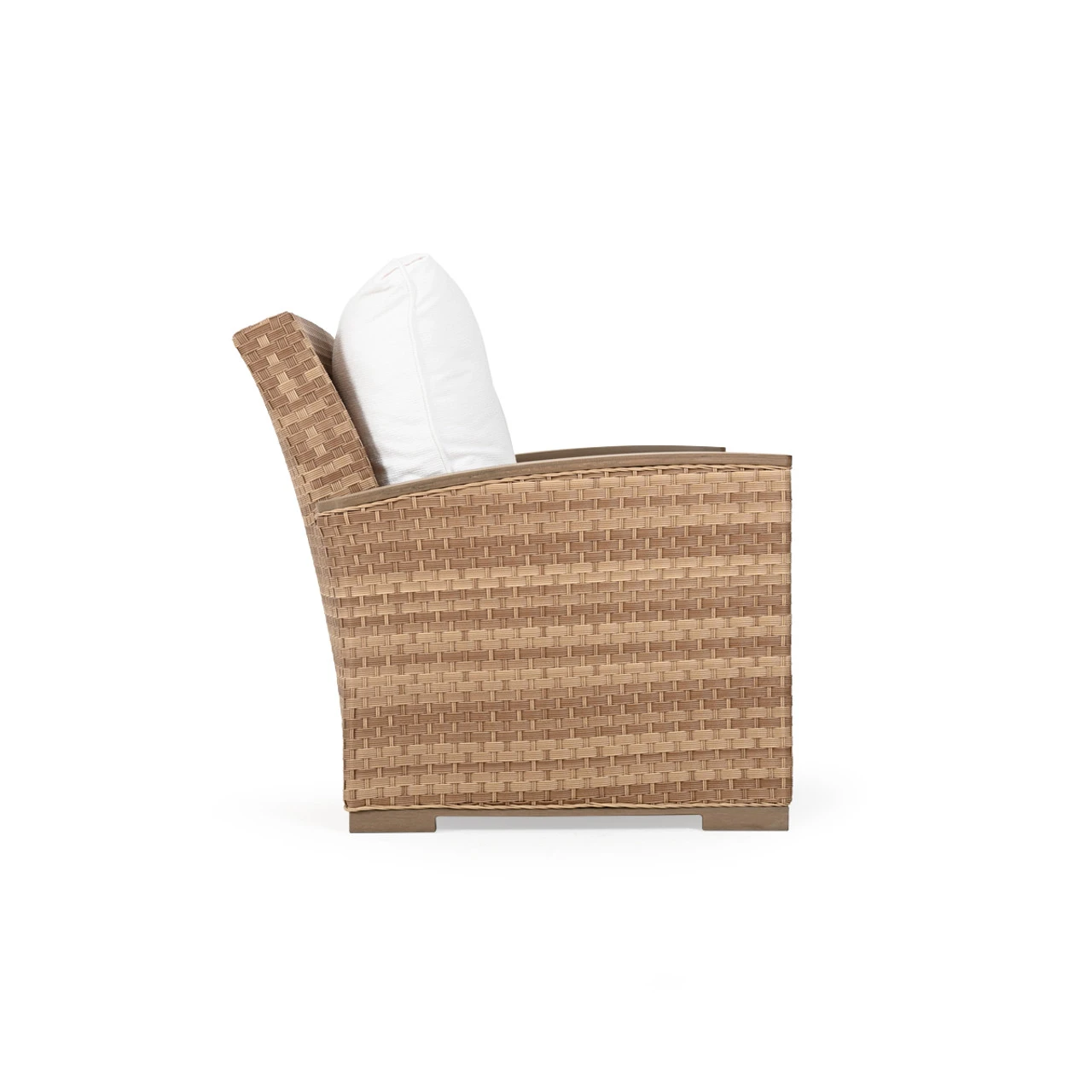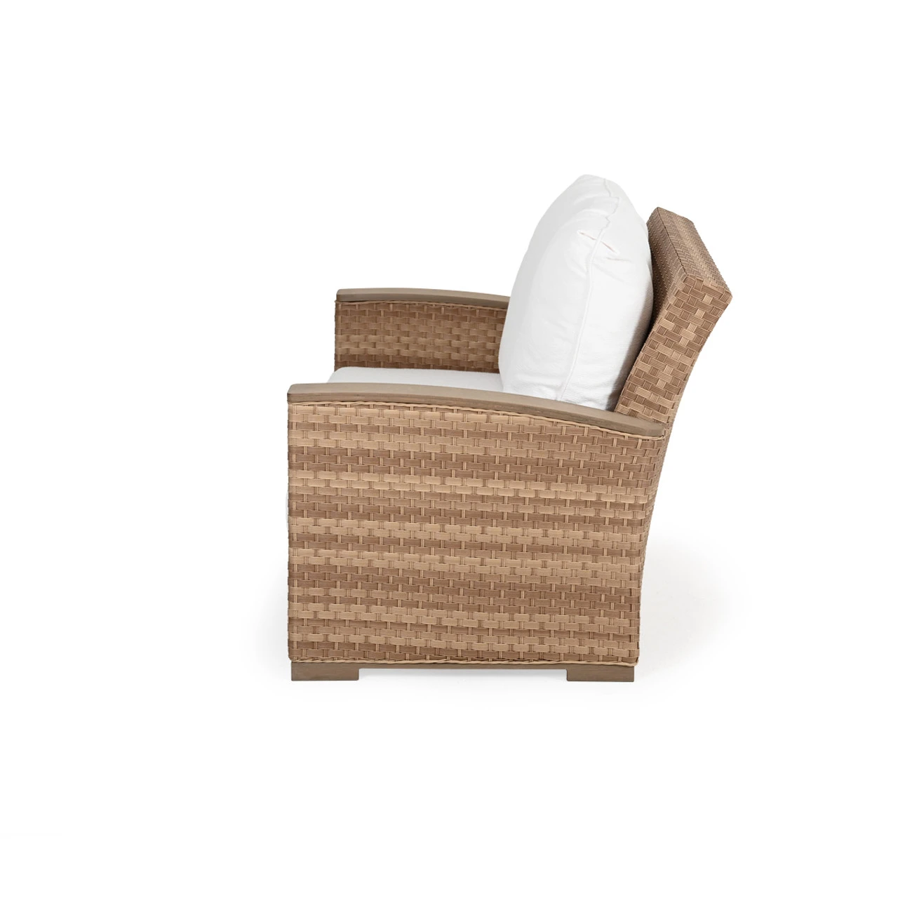 Generous size, matched with the incredible comfort of our handcrafted USA made cushions make this collection a retreat. The all‐weather wicker is hand woven over aluminum frames that will not rust and each piece is finished with PoliSoul™ arms and feet.