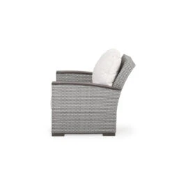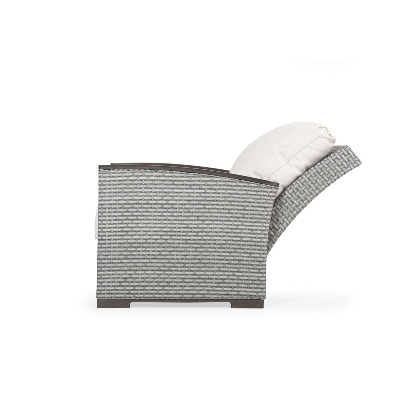 Generous size, matched with the incredible comfort of our handcrafted USA made cushions make this collection a retreat with the additional comfort of motion. The all‐weather wicker on the Retreat Reclining (recliner) Club Chair is hand woven over aluminum frames that will not rust and each piece is finished with PoliSoul™ arms and feet.