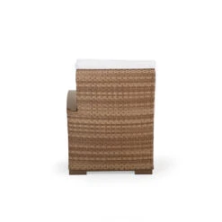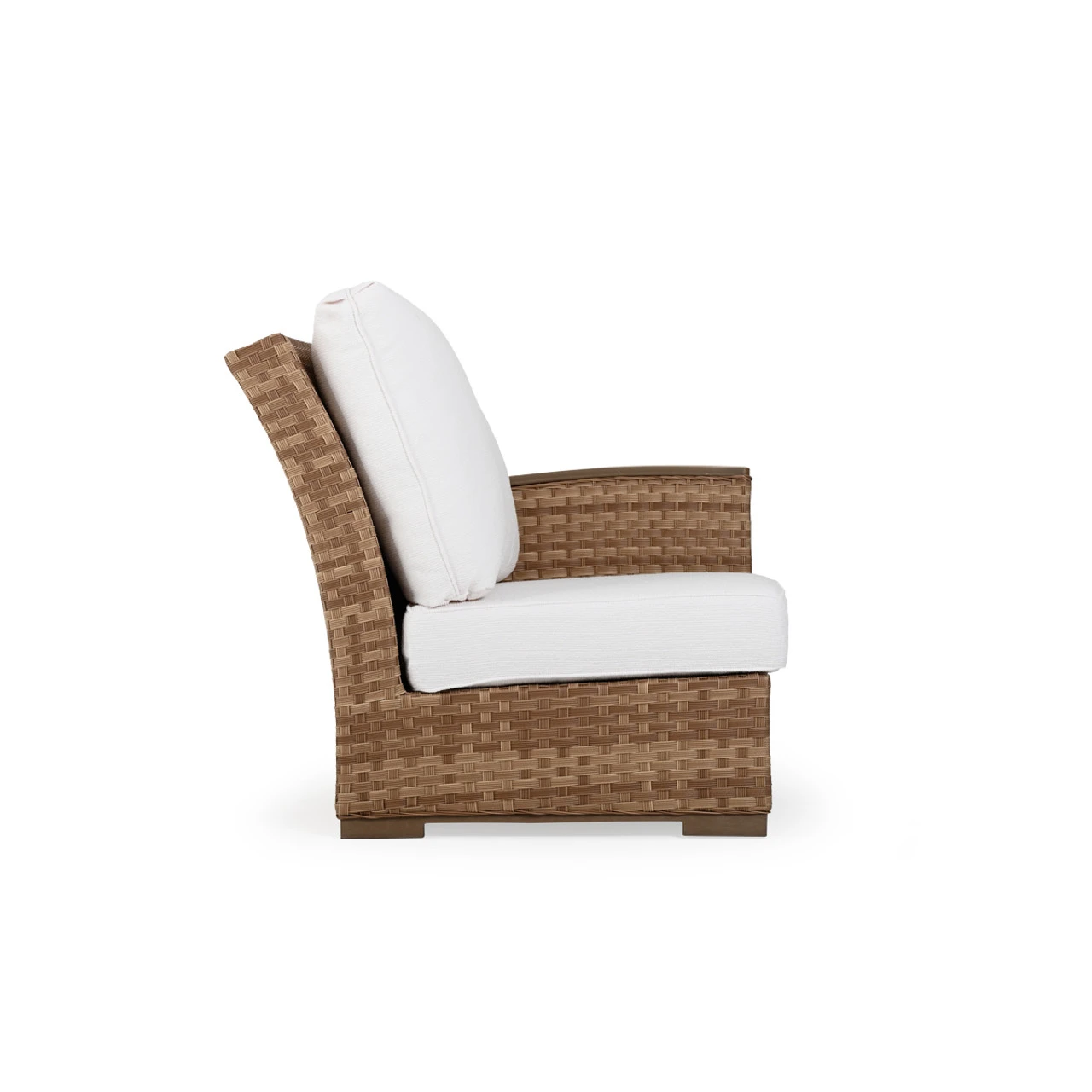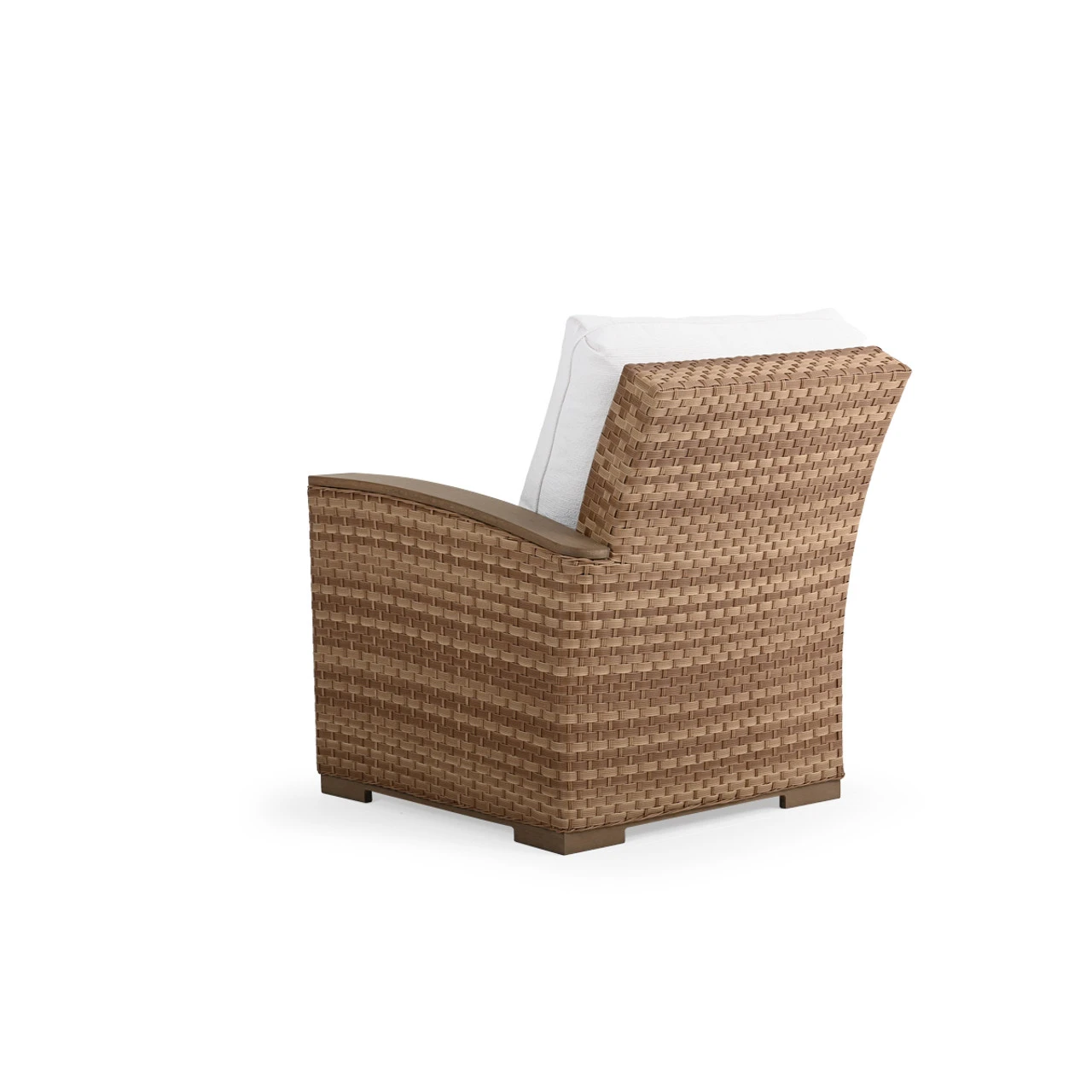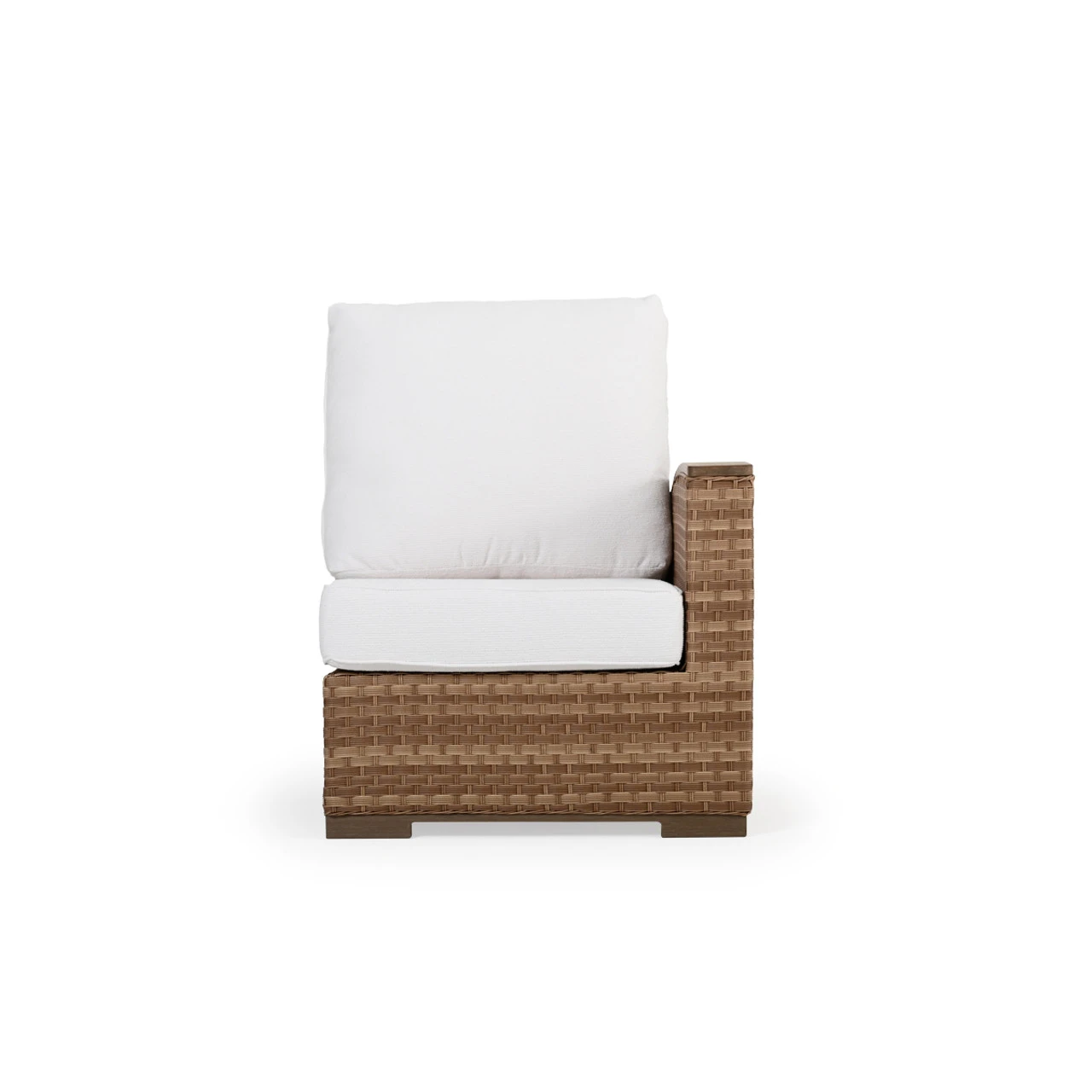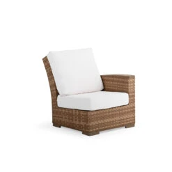Generous size, matched with the incredible comfort of our handcrafted USA made cushions make this collection a retreat. The all‐weather wicker is hand woven over aluminum frames that will not rust and each piece is finished with PoliSoul™ arms and feet. This Right Arm Chair is a great beginning (or end) to your sectional.