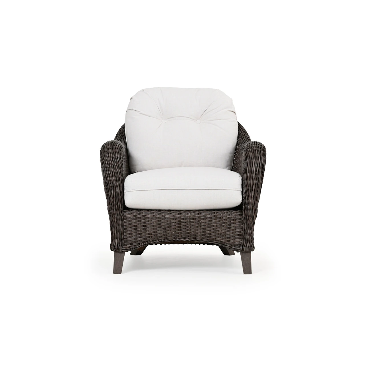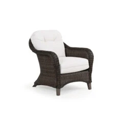 The Sanibel Outdoor Wicker Club Chair adds a modern touch to a classically styled Collection. This stylish chair is created from all weather wicker and PoliSoulâ„¢ Timber. The PoliSoulâ„¢ Timber is durable enough to withstand the coastal elements season after season. The materials used mimic natural elements adding a softness to this strong piece. Get cozy with our Sanibel Club Chair today and ease your worries away. Any Toss Pillows shown are optional and sold separately.