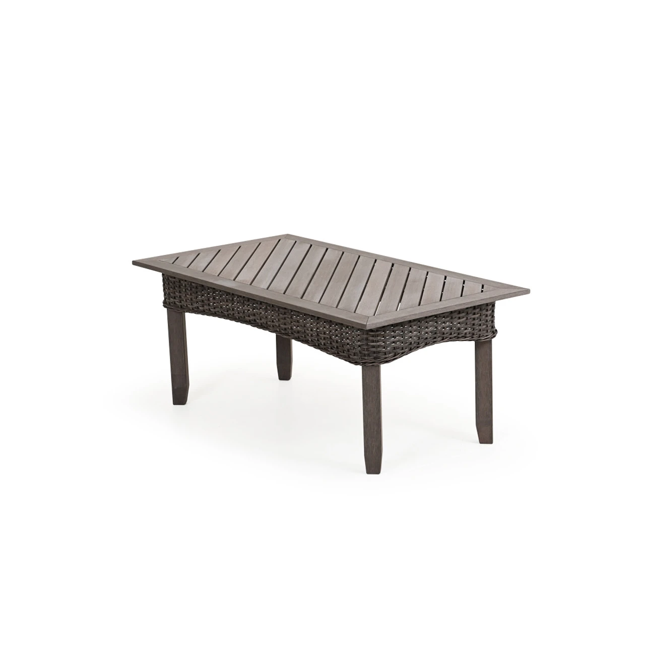 This Sanibel Outdoor Wicker Rectangle Cocktail Table is created from all weather wicker and PoliSoulâ„¢ Timber. The PoliSoulâ„¢ Timber is durable enough to withstand the coastal elements season after season. The materials used mimic natural elements adding a softness to this strong piece.