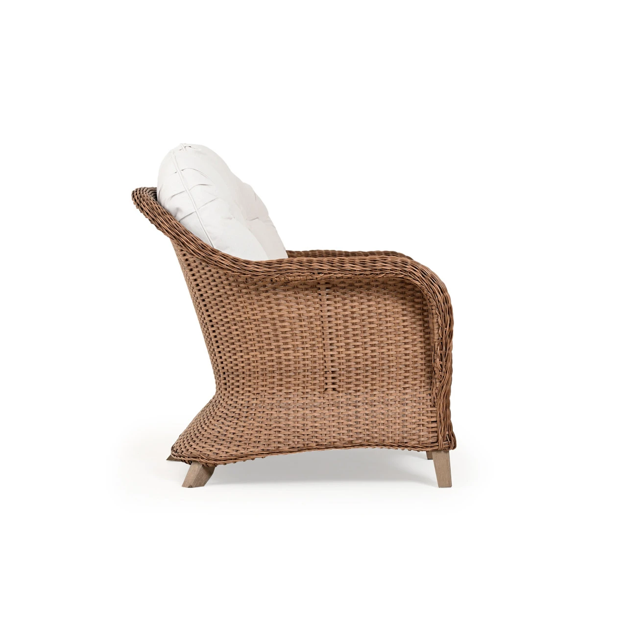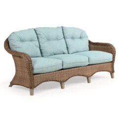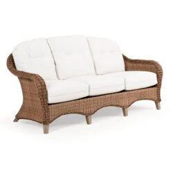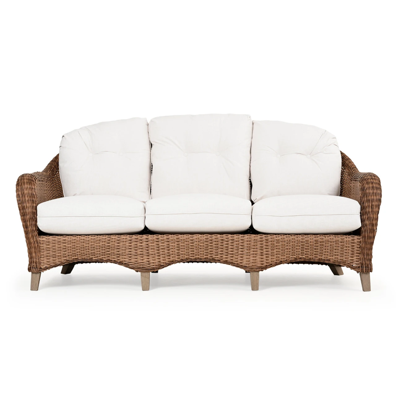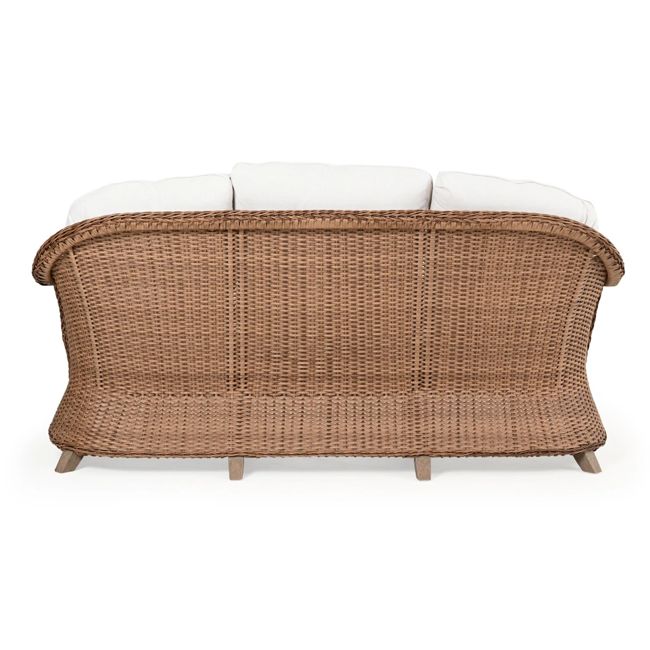 The Sanibel Outdoor Wicker Sofa adds a modern touch to a classically styled Collection. This stylish sofa is created from all weather wicker and PoliSoulâ„¢ Timber. The PoliSoulâ„¢ Timber is durable enough to withstand the coastal elements season after season. The materials used mimic natural elements adding a softness to this strong piece. Any Toss Pillows shown are optional and sold separately.